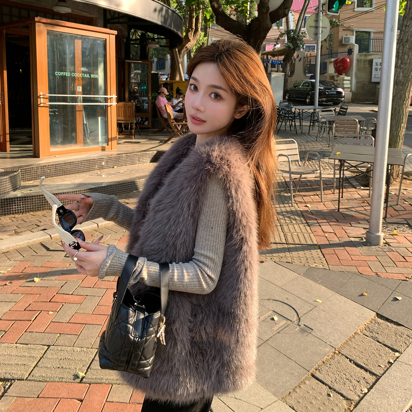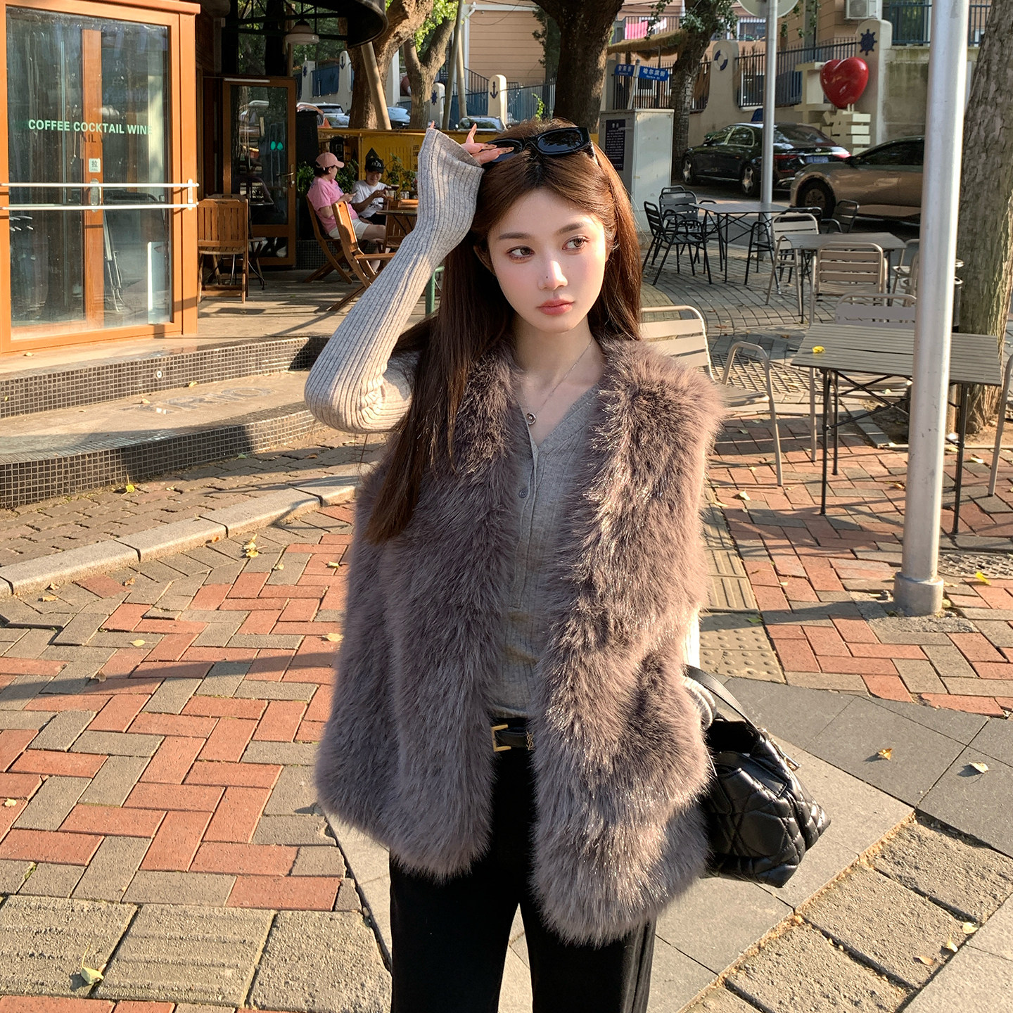 📚 alex stevnes毛毛拼接马甲坎肩女冬季新款高级感无袖保暖短款外套