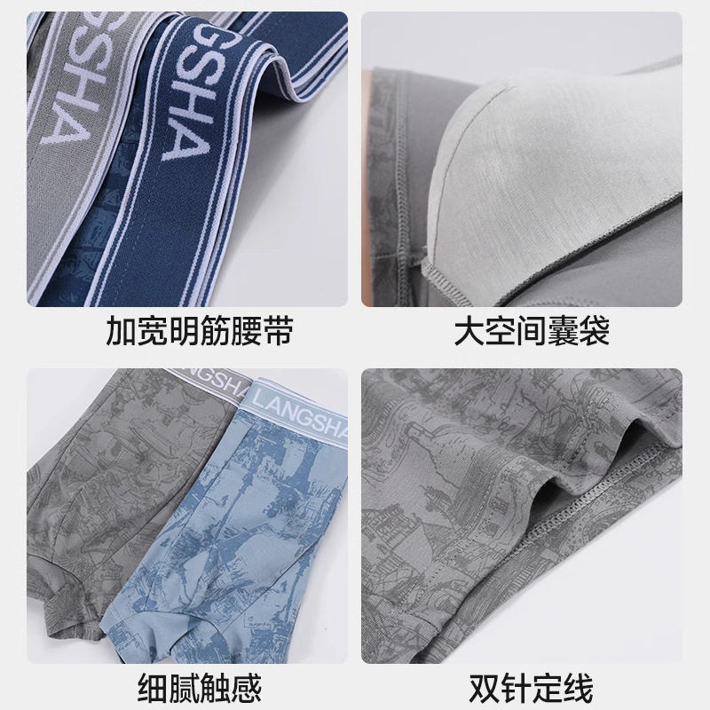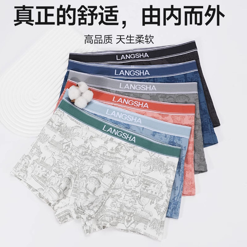 📚 浪莎纯棉内裤男士春夏季桑蚕丝抗菌裆男生透气四角裤头平角短