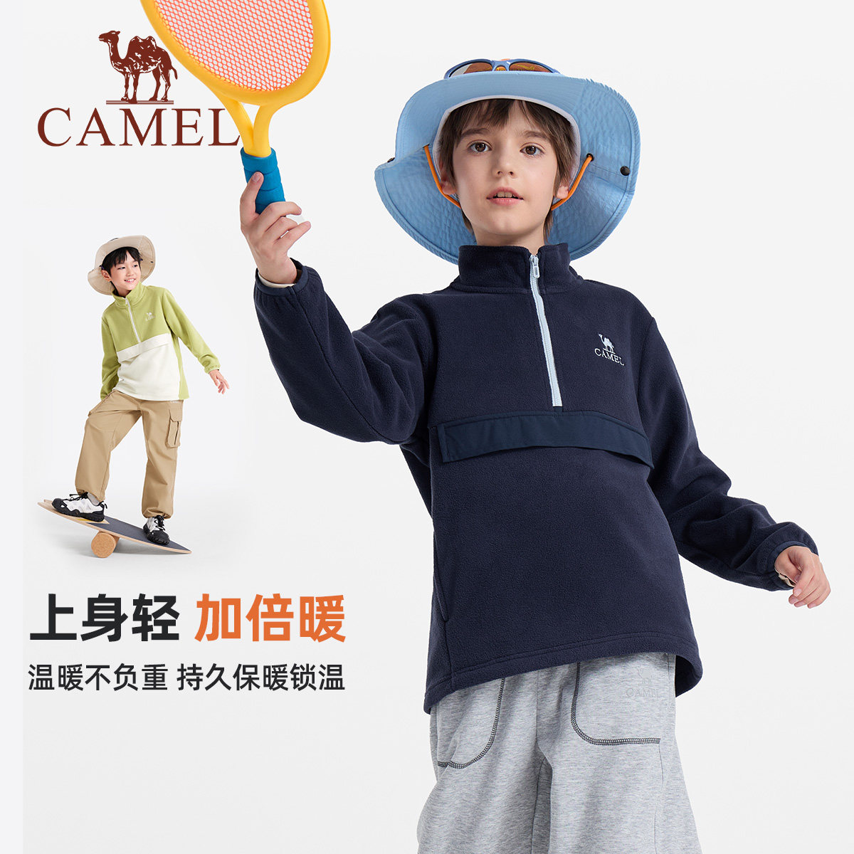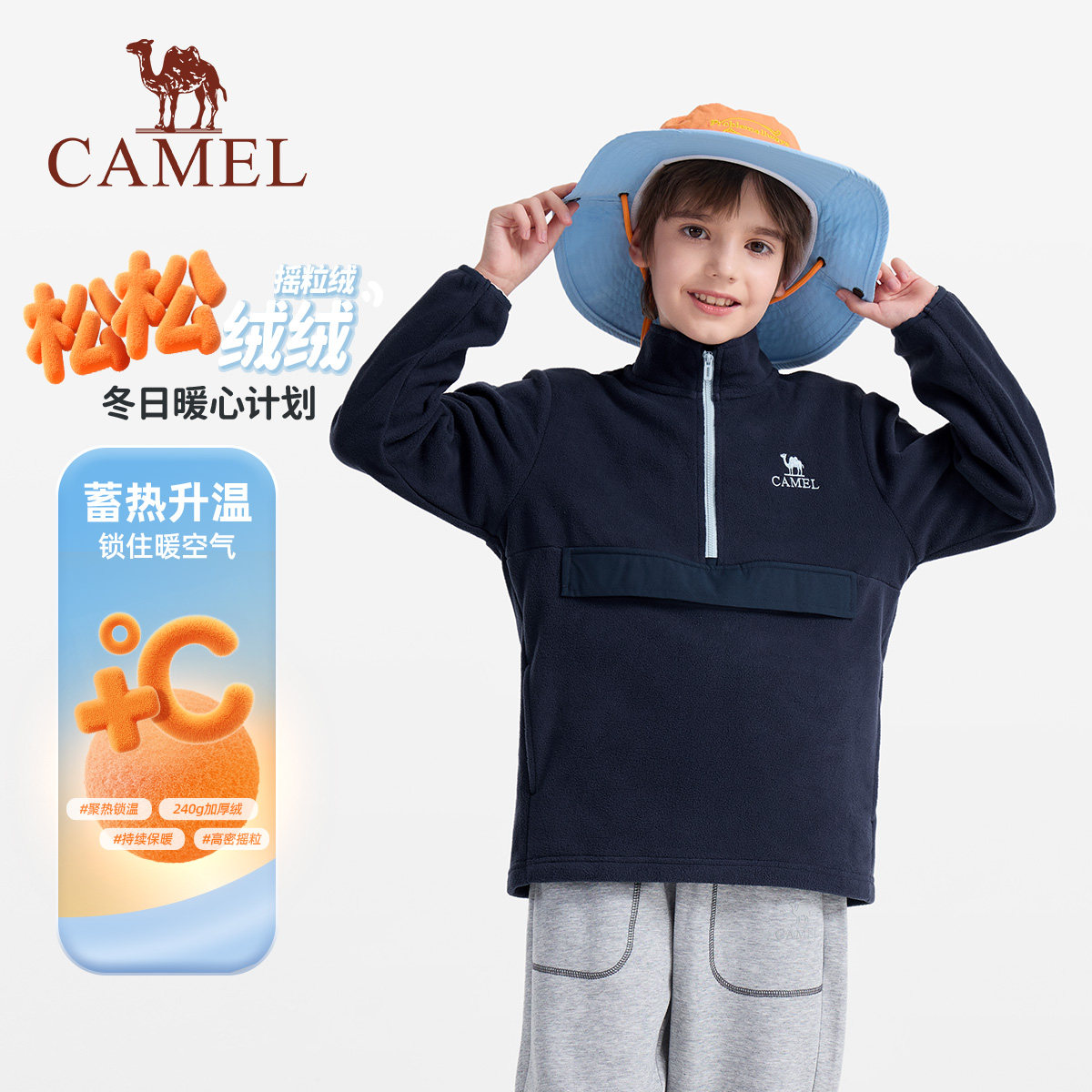 📚 骆驼儿童摇粒绒卫衣外套2026新款秋保暖上衣加绒立领男童抓绒衣