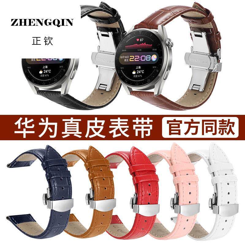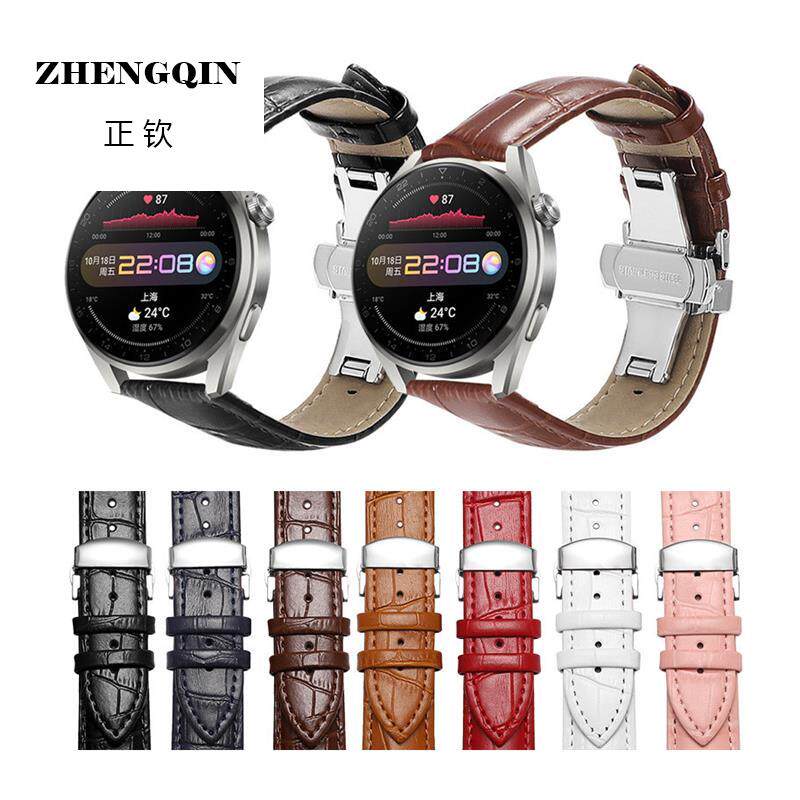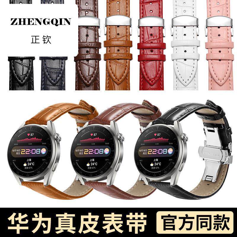 📚 适用于华为gt3真皮手表表带22mm竹节纹watch3pro真皮手表表带通用