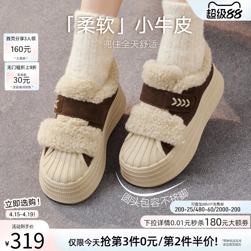 📚 百思图冬季商场新款加绒毛毛鞋棉鞋女运动休闲贝壳鞋E1911DM5
