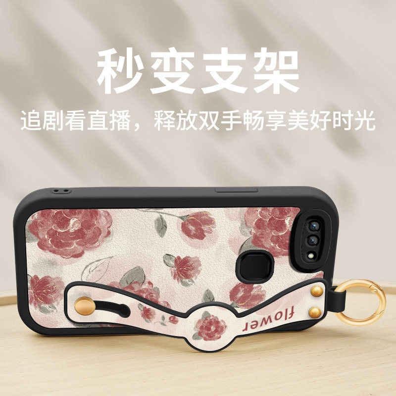 📚 适用vivox23手机壳x21后置指纹新款女x23幻彩版红色玫瑰腕带支架挂绳x20小羊皮保护套全包防摔VIVOV硅胶软壳