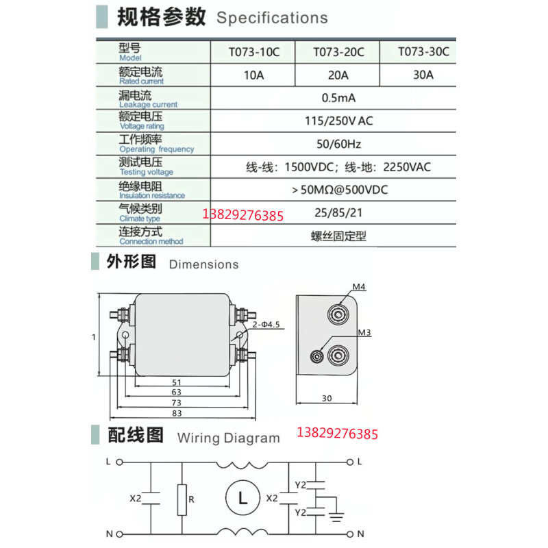 📚 原装胜蓝SIRON单相双极滤波器T073-10C/20A/30C T073-10D 20D 30D