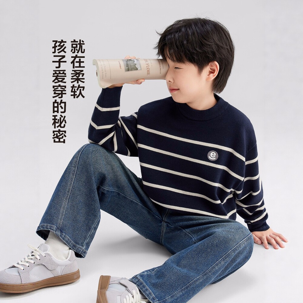 📚 男童圆领条纹毛衣秋冬季新款中大童条纹打底针织衫儿童线衣8167