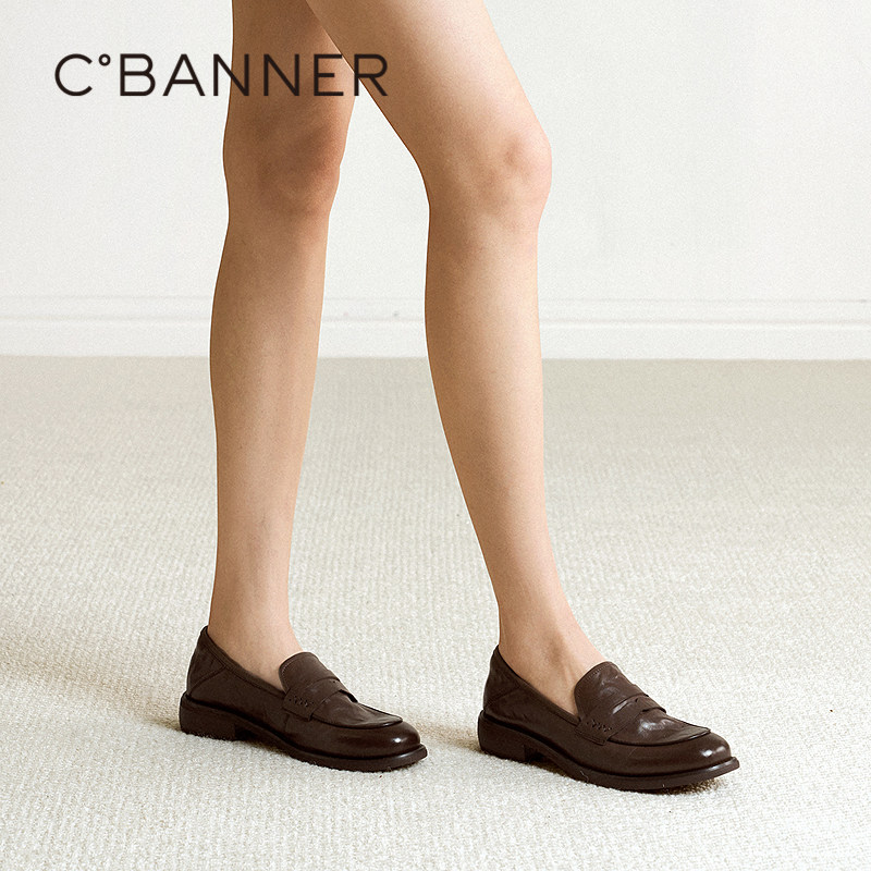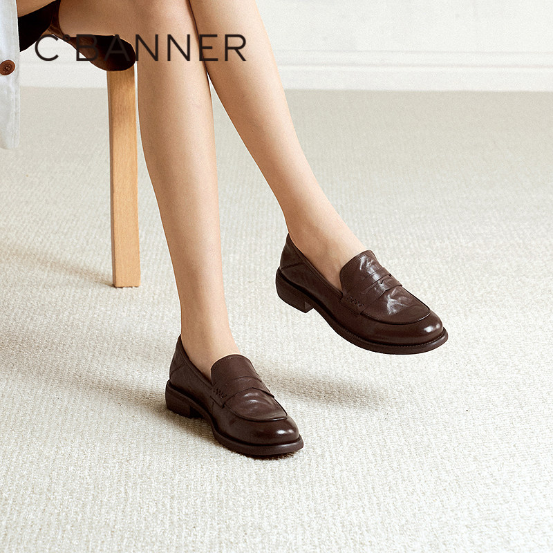 📚 千百度手抓皮低跟乐福鞋女新款简约老钱风英伦小皮鞋通勤深口单鞋