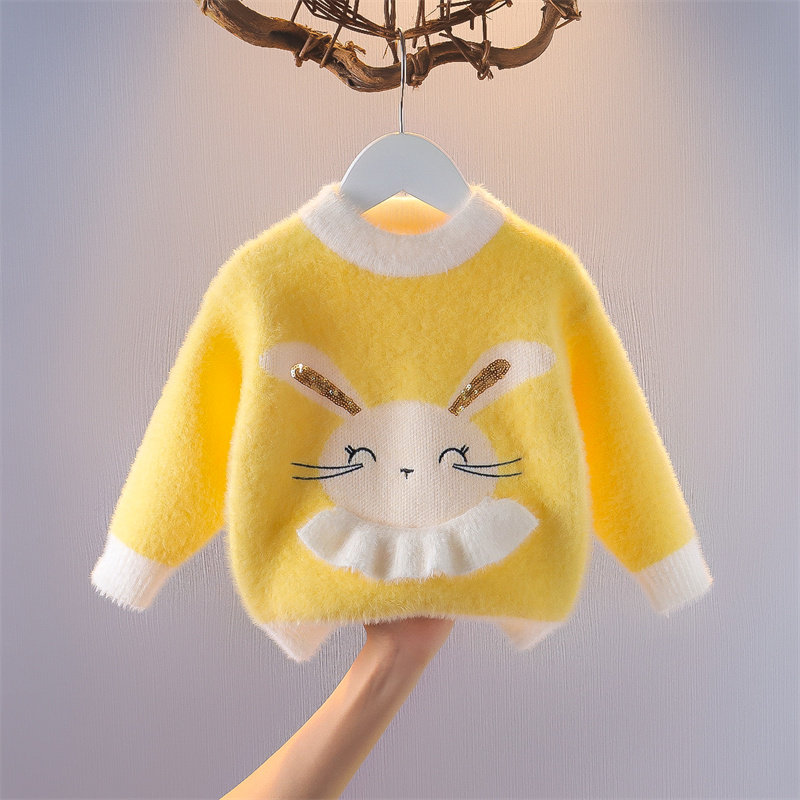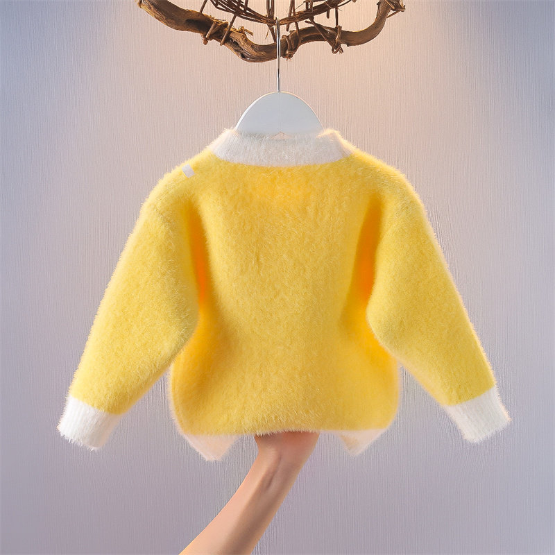 📚 女宝宝水貂绒卡通毛衣2025秋冬装新款儿童针织打底衫女童韩版上衣