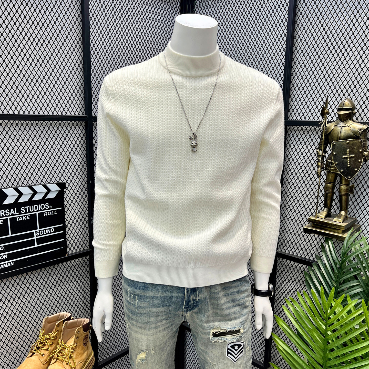 📚 纯色长袖半高领打底中领坑条针织衫毛衣男士秋冬季修身上衣基础款