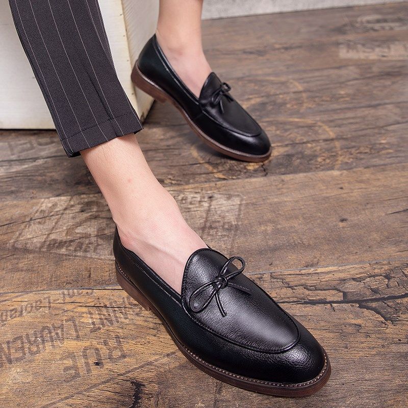 📚 男士皮鞋韩版商务正装内增高休闲鞋潮G流英伦风一脚蹬豆豆鞋男鞋