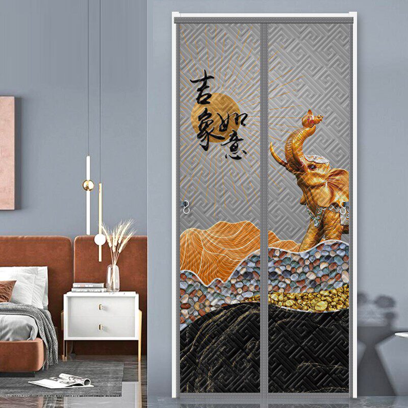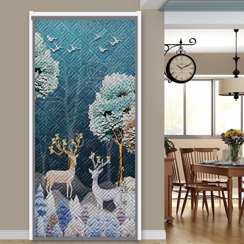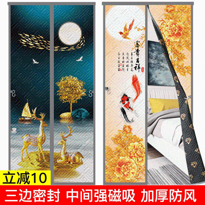 📚 秋冬棉门帘防风加厚空调保暖磁吸免钉深色轻奢防寒双开棉布帘2021