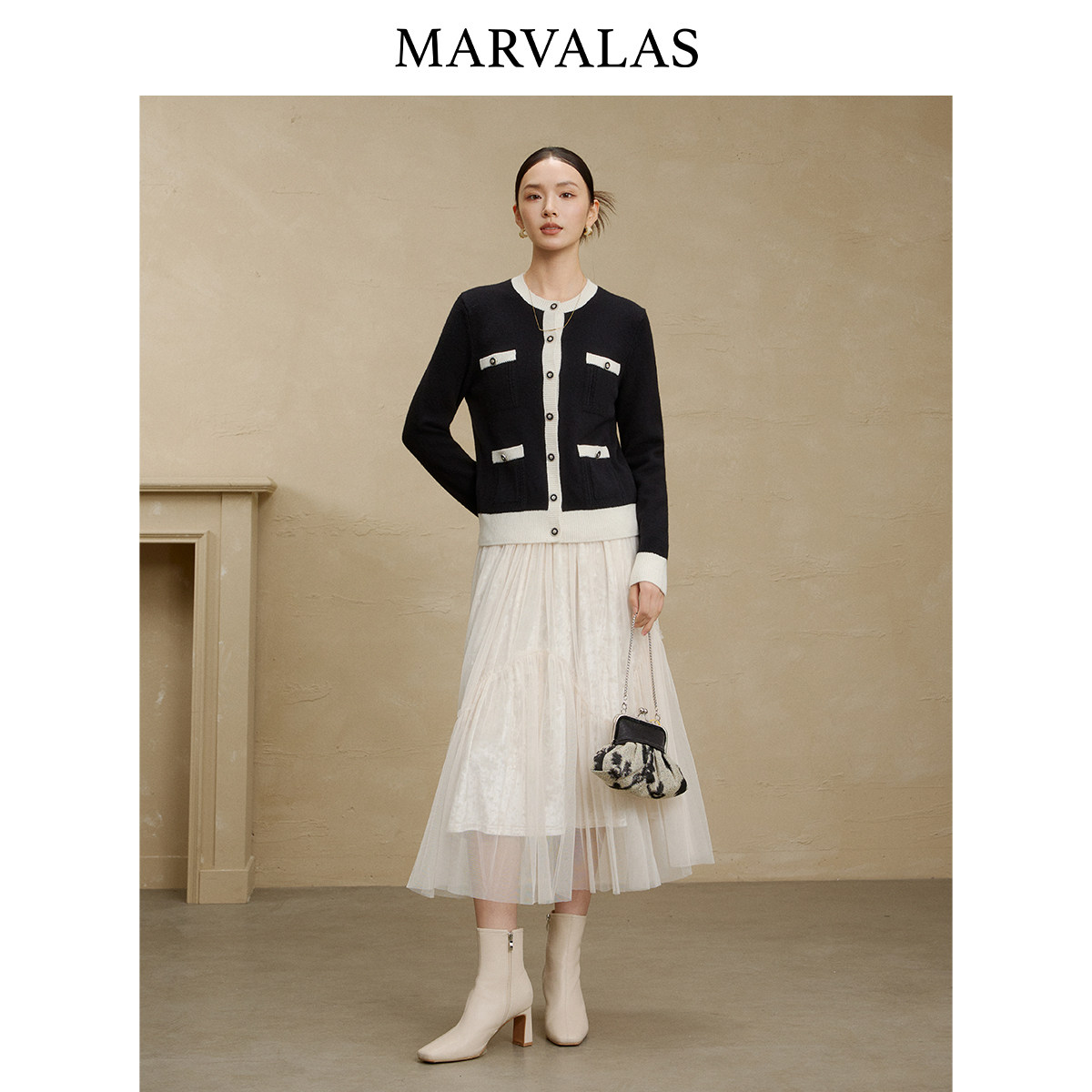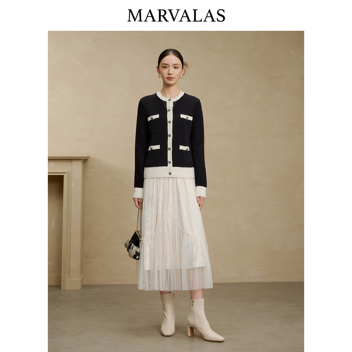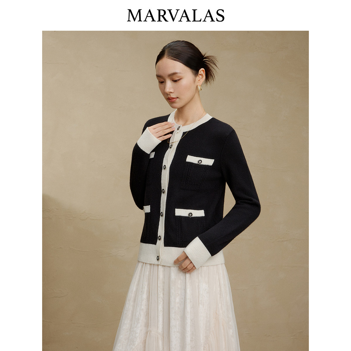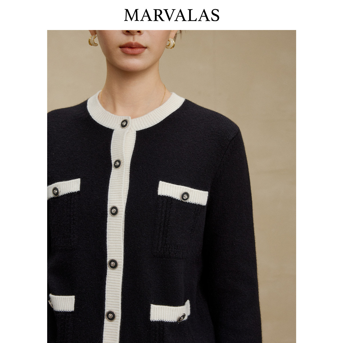 📚 曼德诗绵羊毛开衫2025冬季新款时尚黑白撞色毛衣百搭针织衫上衣女
