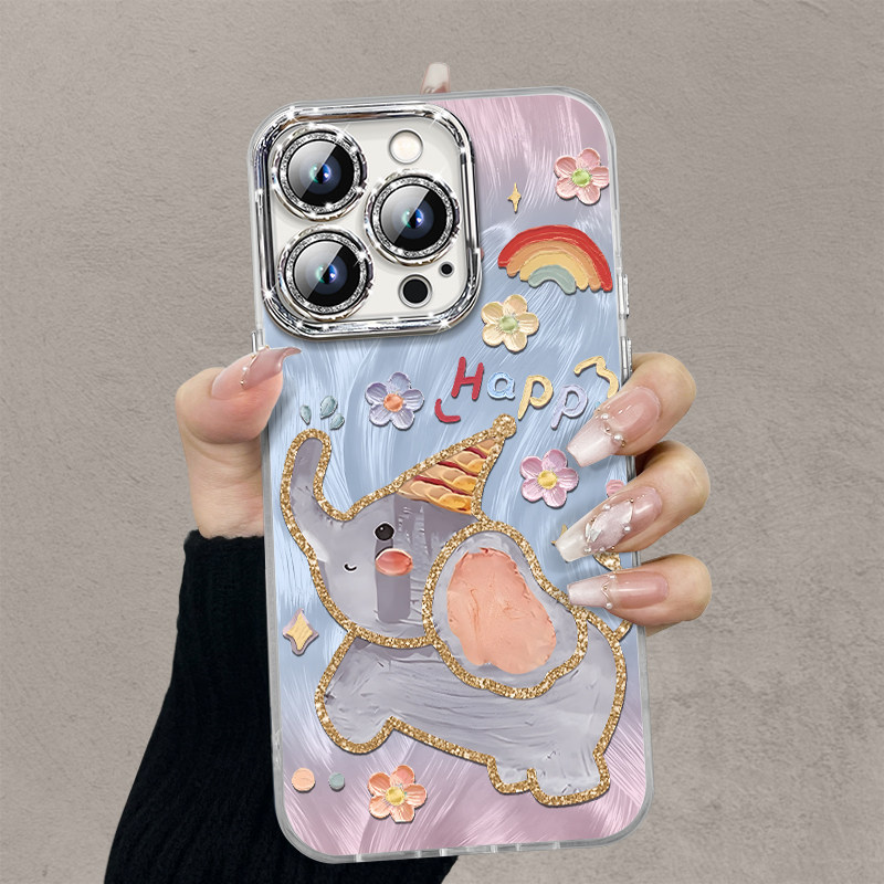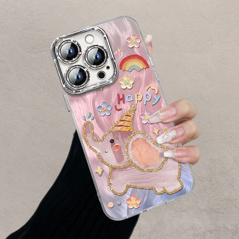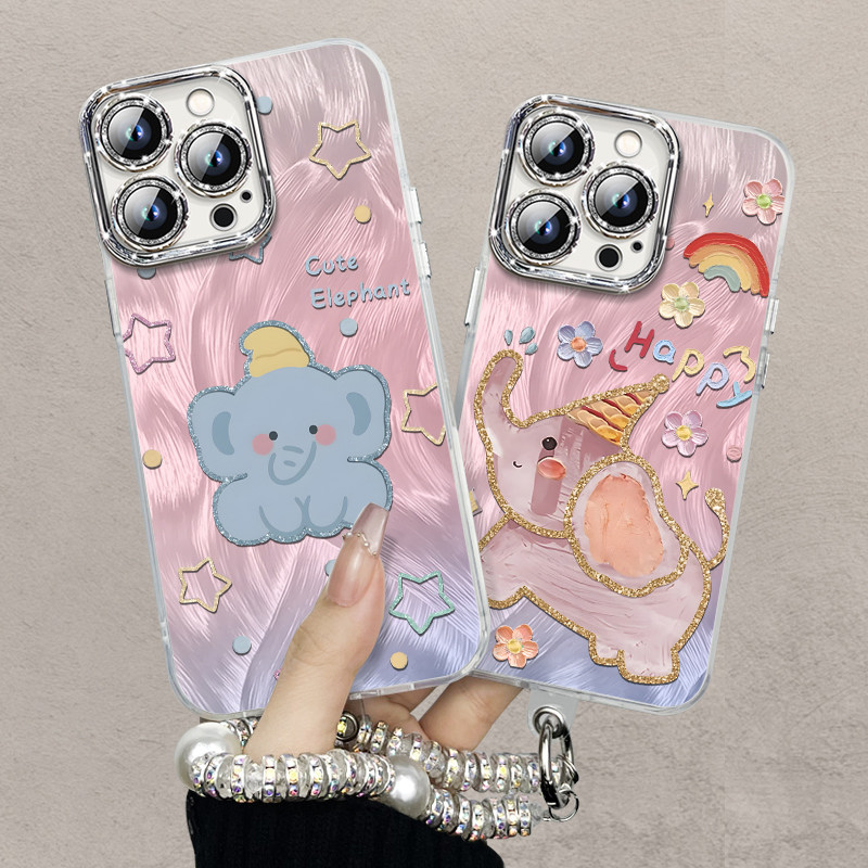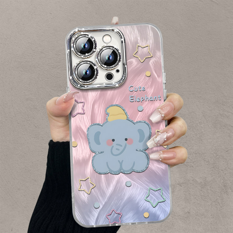 📚 适用苹果16promax手机壳新款渐变粉小飞象iphone15pro镜头全包防摔保护套15plus网红可爱14小众卡通创意外壳