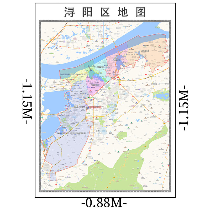 📚 浔阳区地图1.15m折叠版九江市会议办公室装饰画客厅背景墙贴图