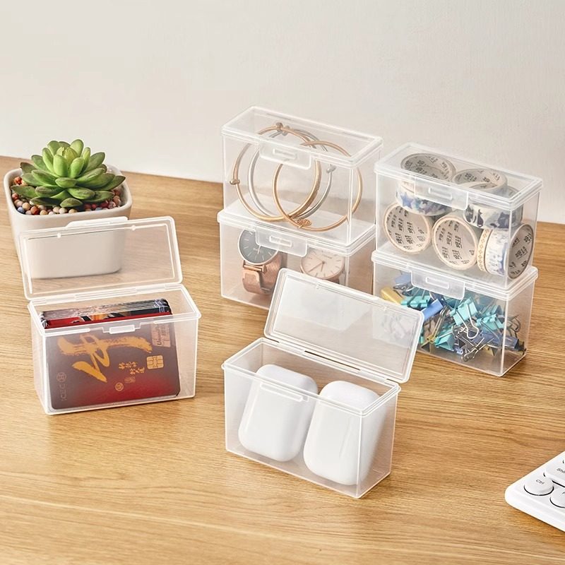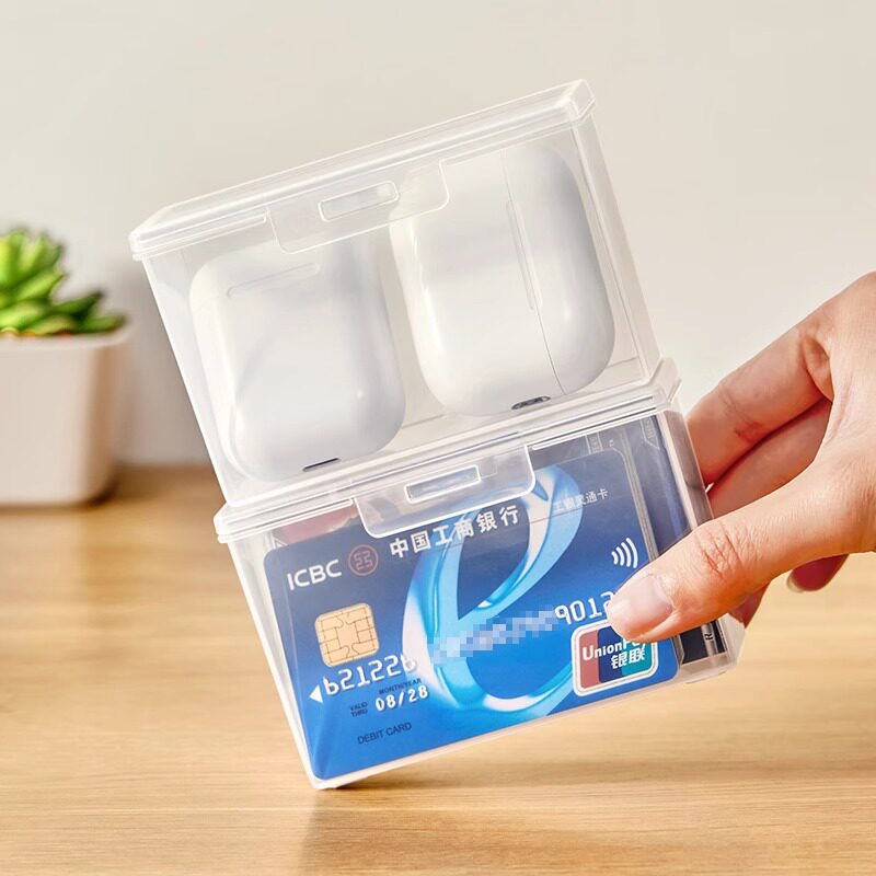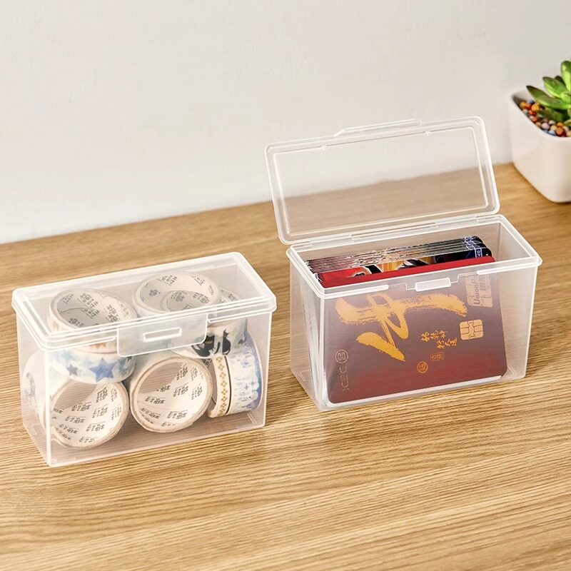 📚 卡片收纳盒透明桌面塑料盒子卡包银行卡名片小卡翻盖储物盒整理盒