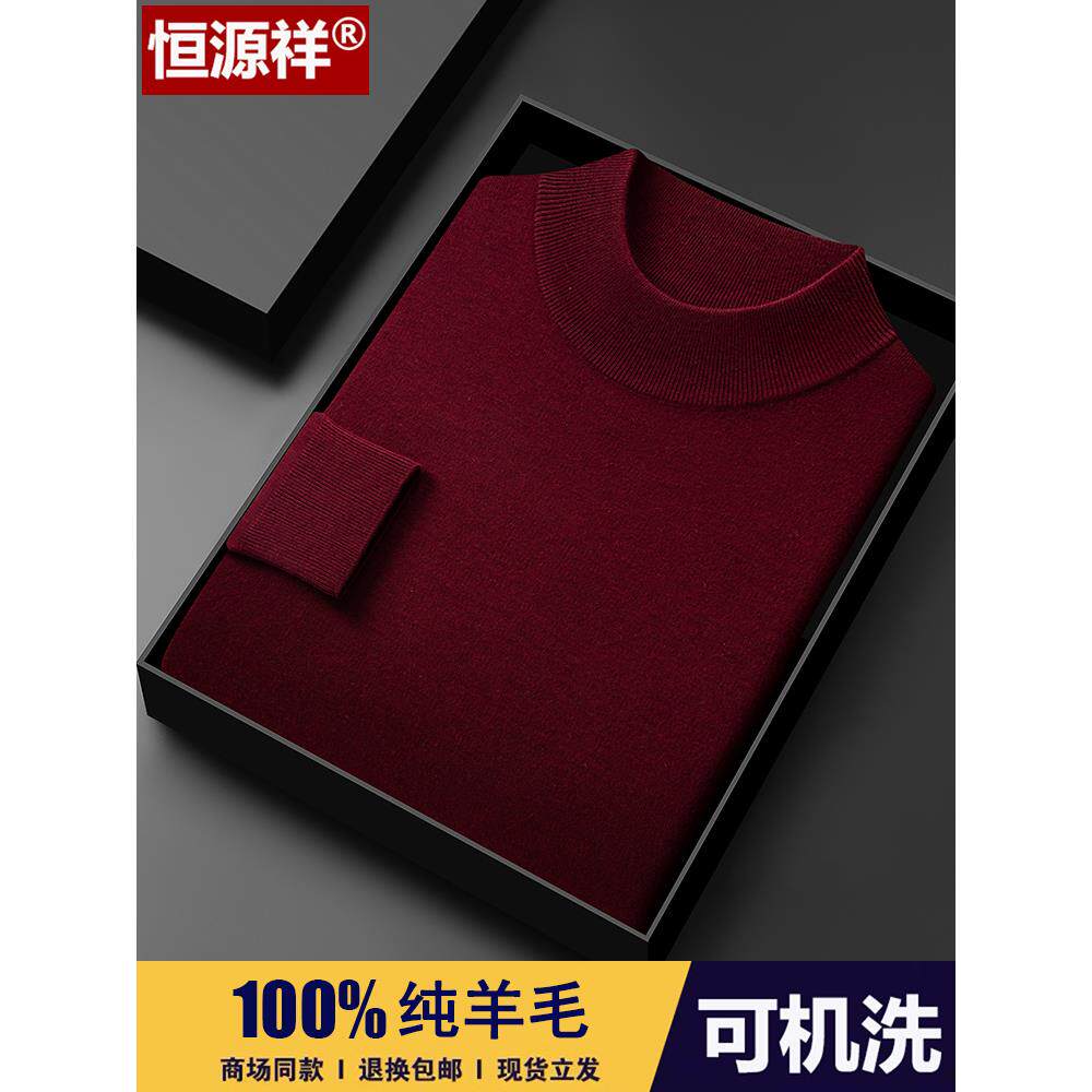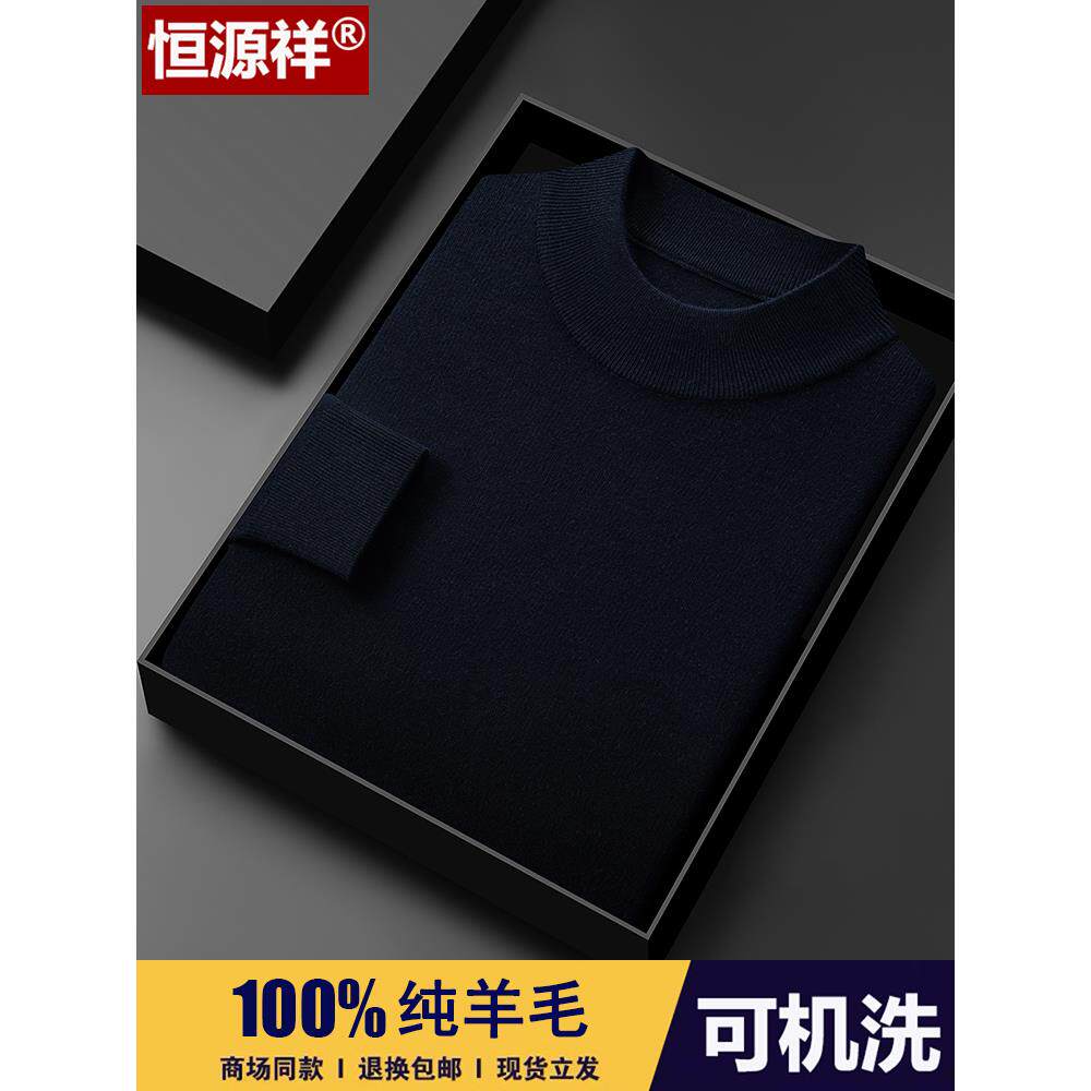 📚 恒源祥羊毛衫男士半高领毛衣春秋薄款针织长袖t恤精纺羊绒打底衫