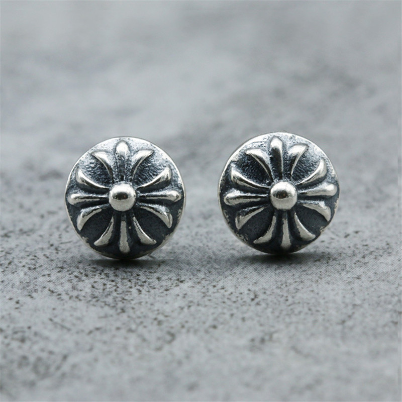 📚 赵东泽同款耳环圆形防过敏银针十字军花个性男女潮轻奢高级感小众