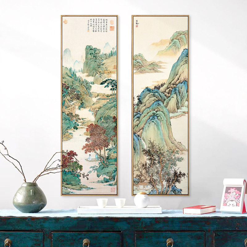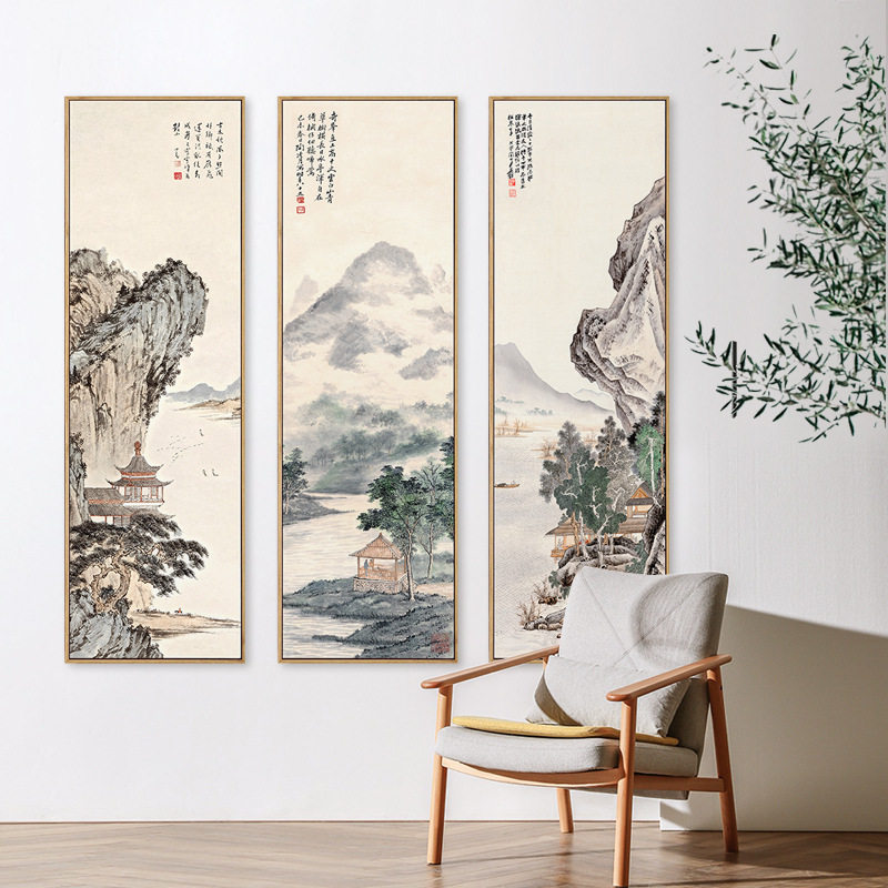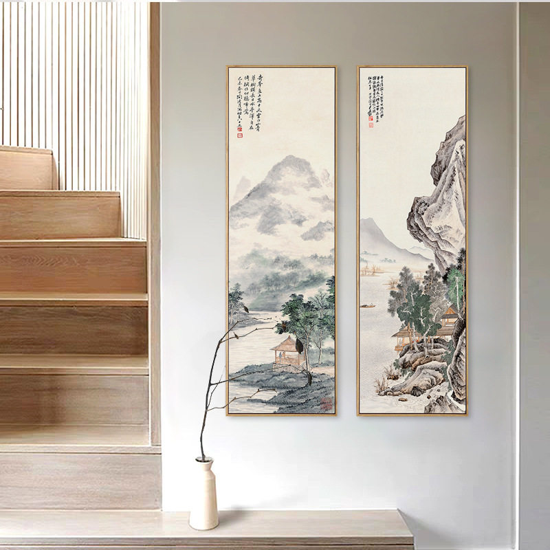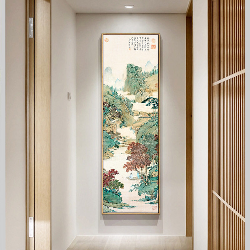 📚 玄关竖版山水挂画新中式古韵装饰画古代名家山水国画茶室玄关墙画