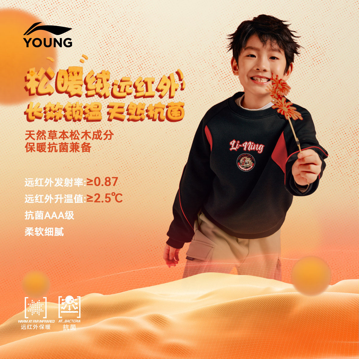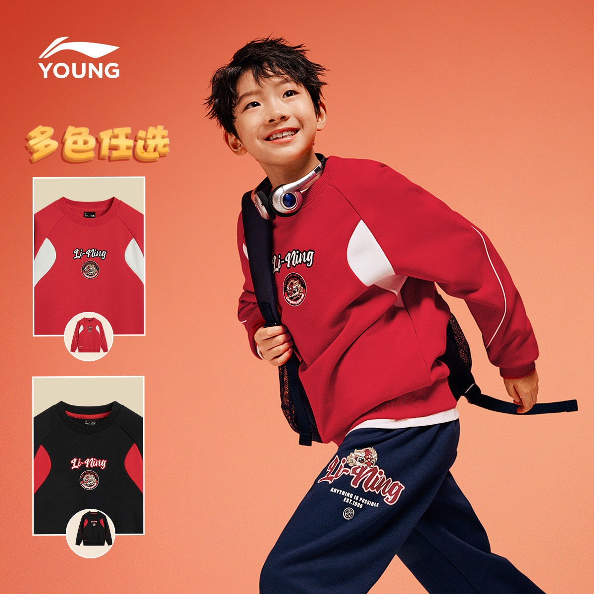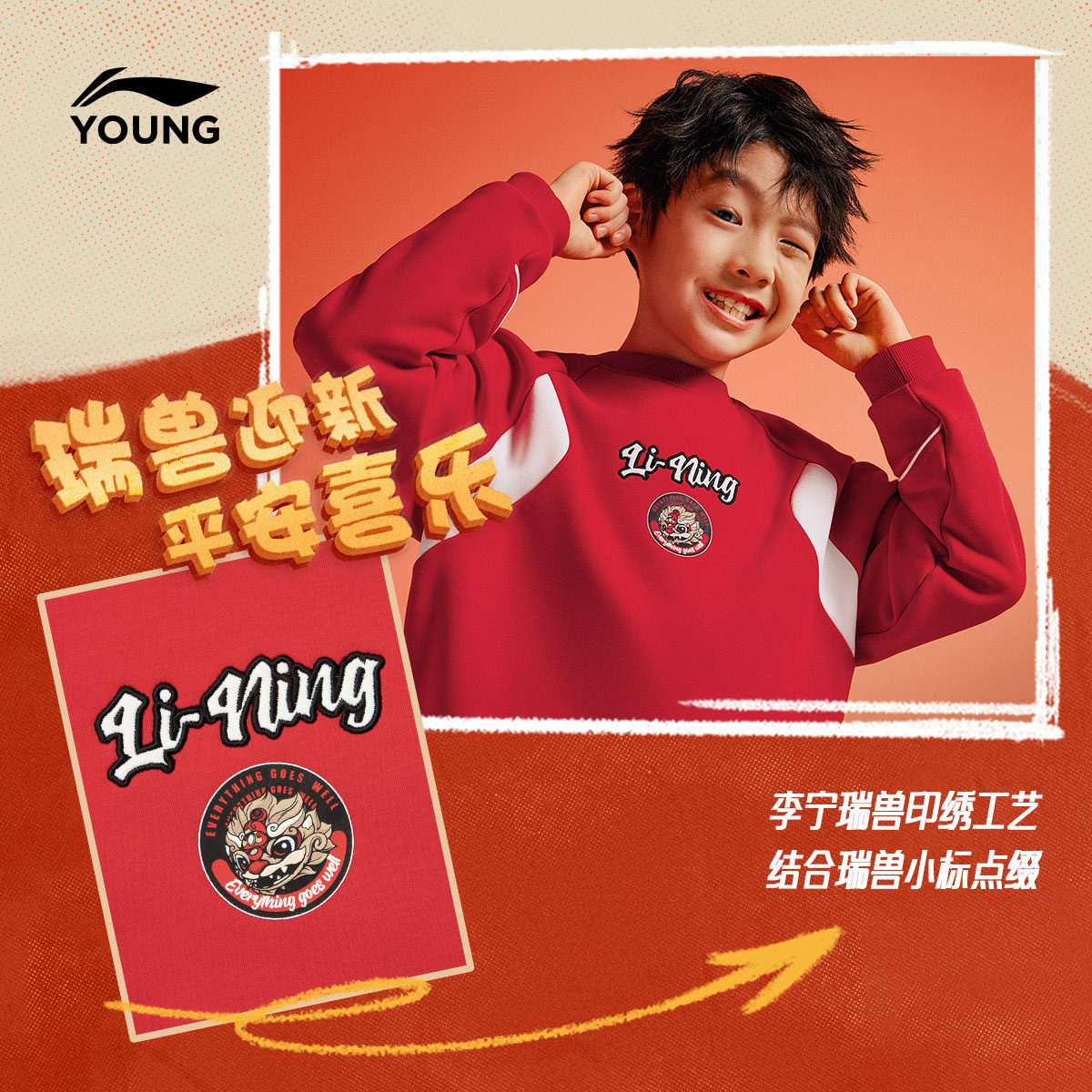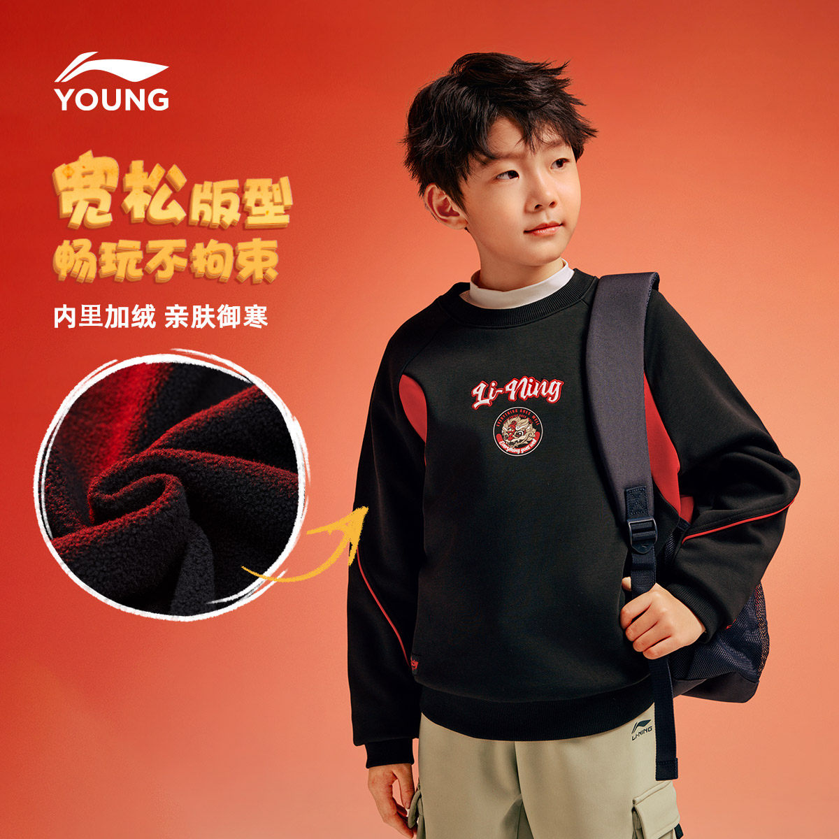 📚 李宁新年款加绒卫衣男孩新款红色衣服男童装女童中大童秋冬款冬装