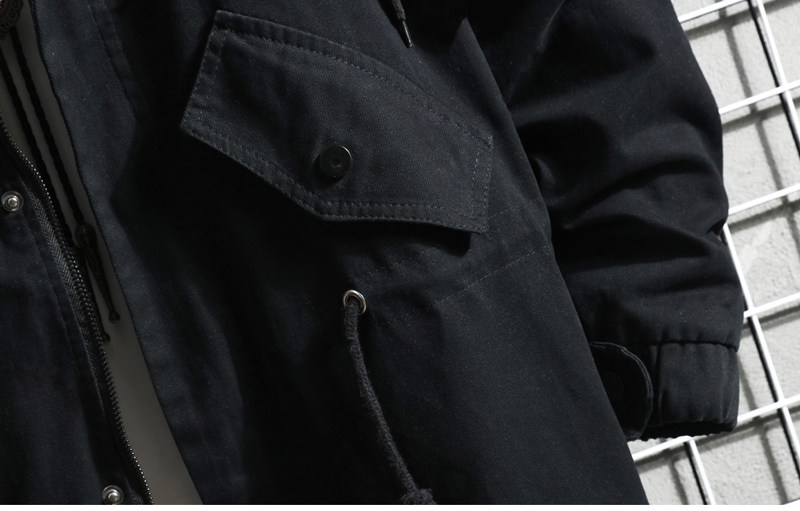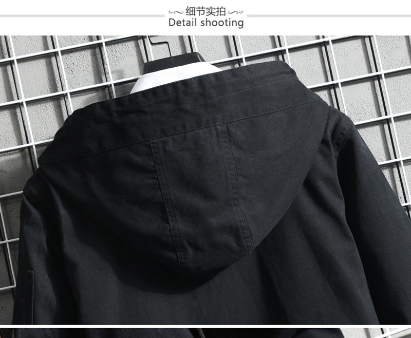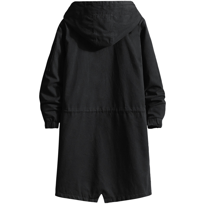 📚 新款纯棉中长款风衣外套男女春秋款冬款连帽大衣黑色青少年流行潮