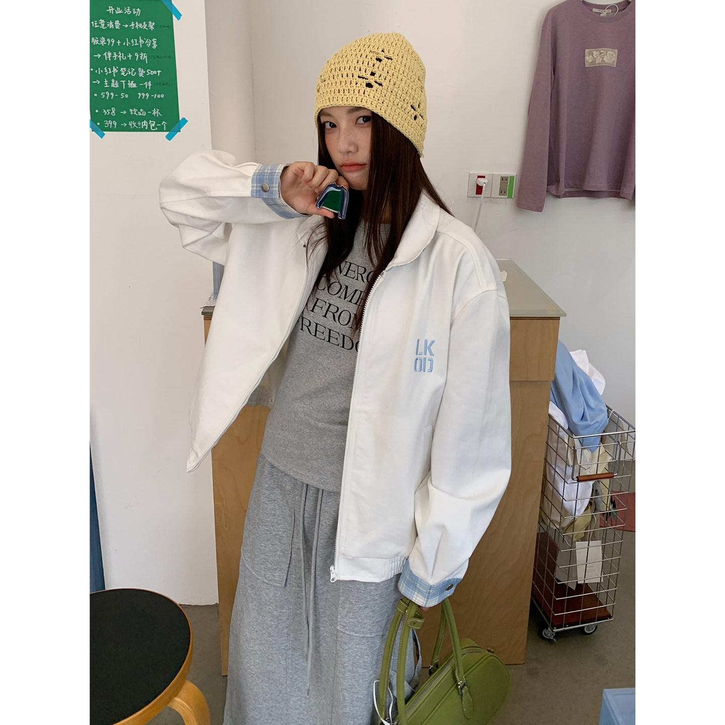 📚 LK STORE LKOD2025秋冬格子拼接夹克情侣潮牌美式复古外套男女
