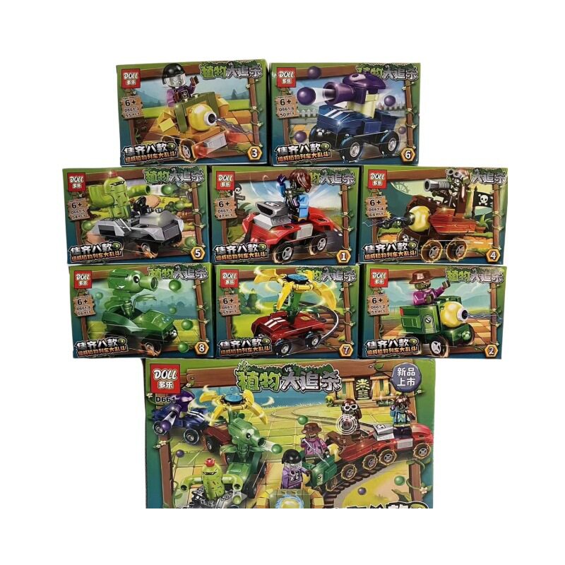 📚 多乐D661植物大战小鬼僵尸狮面终结者苹果迫击炮列车追杀积木玩具