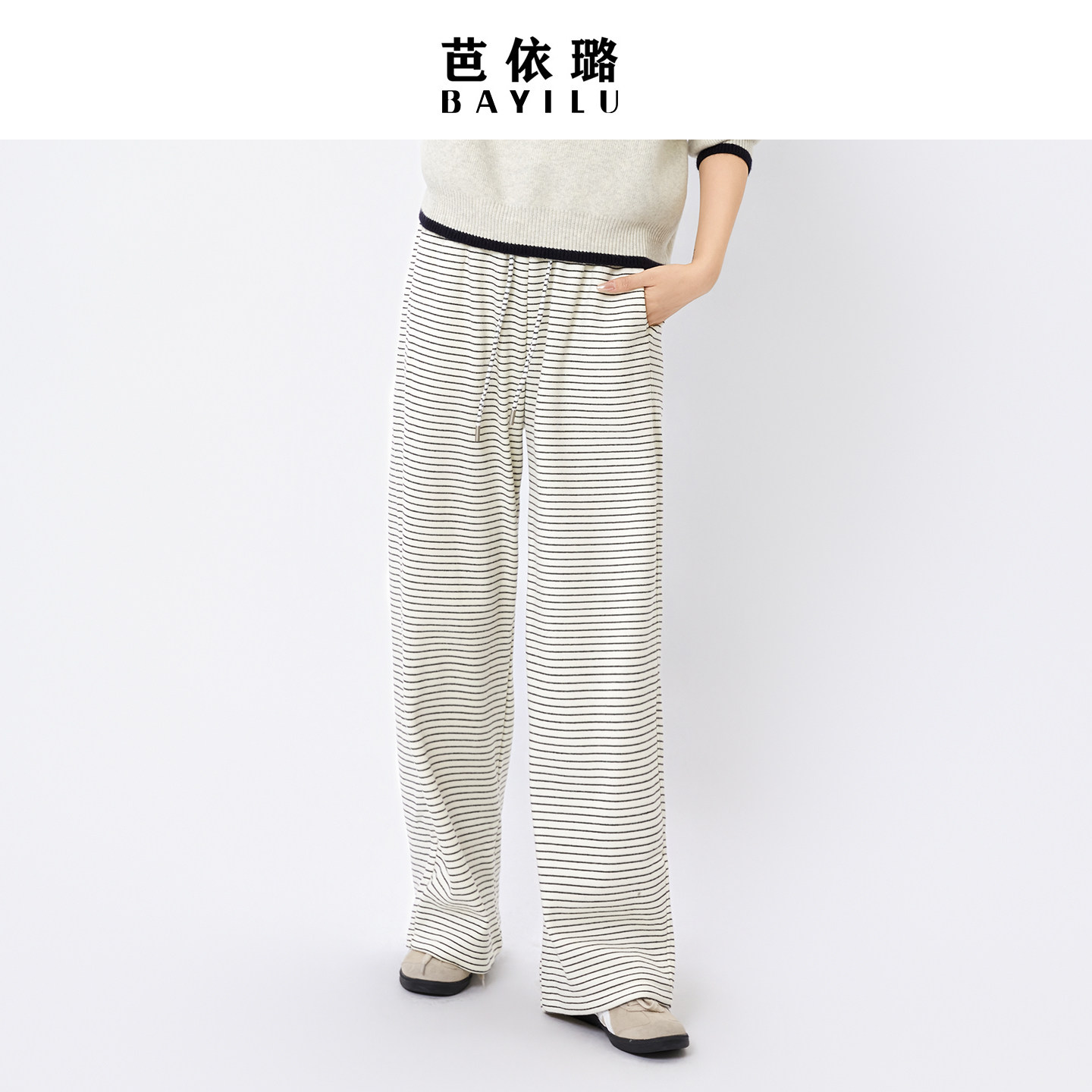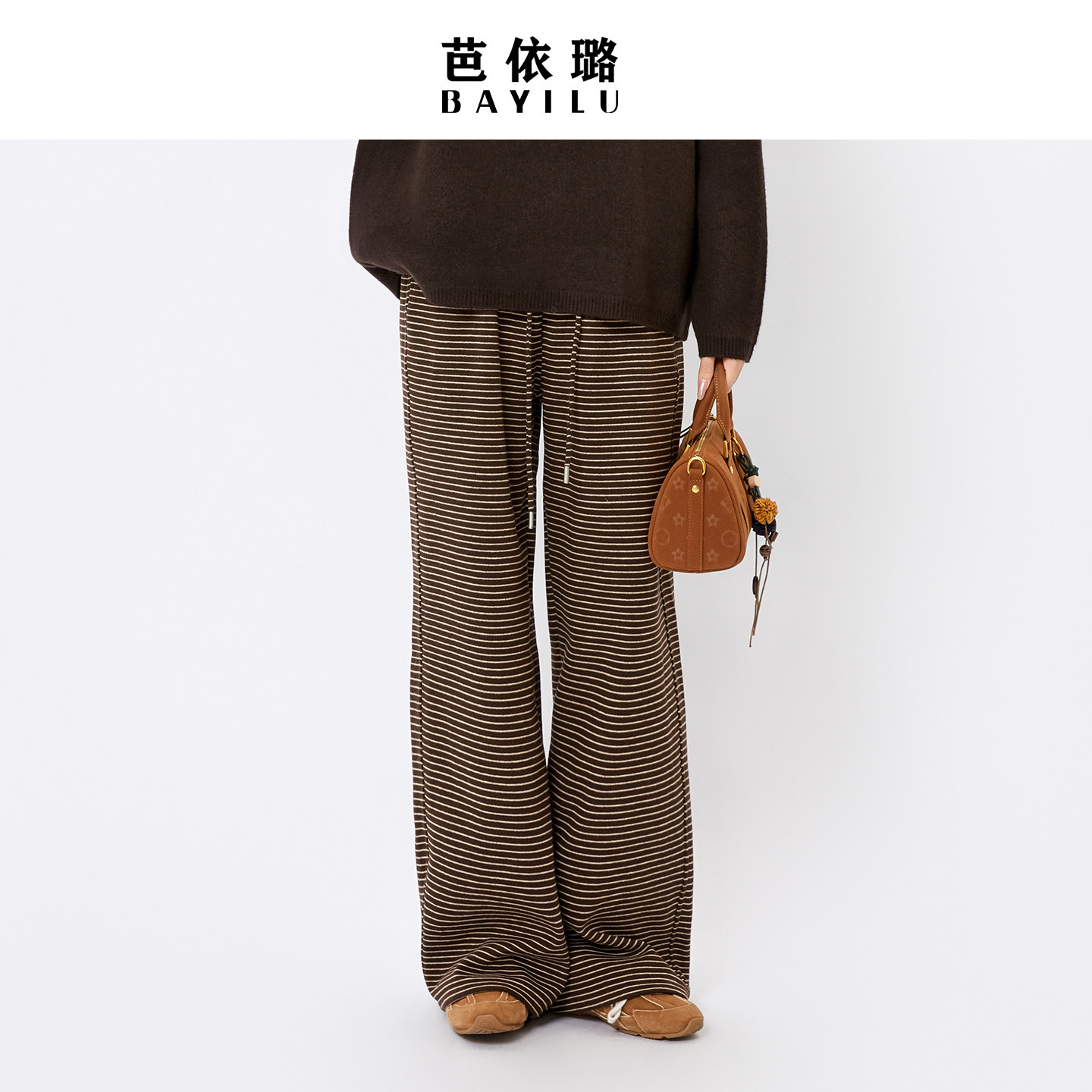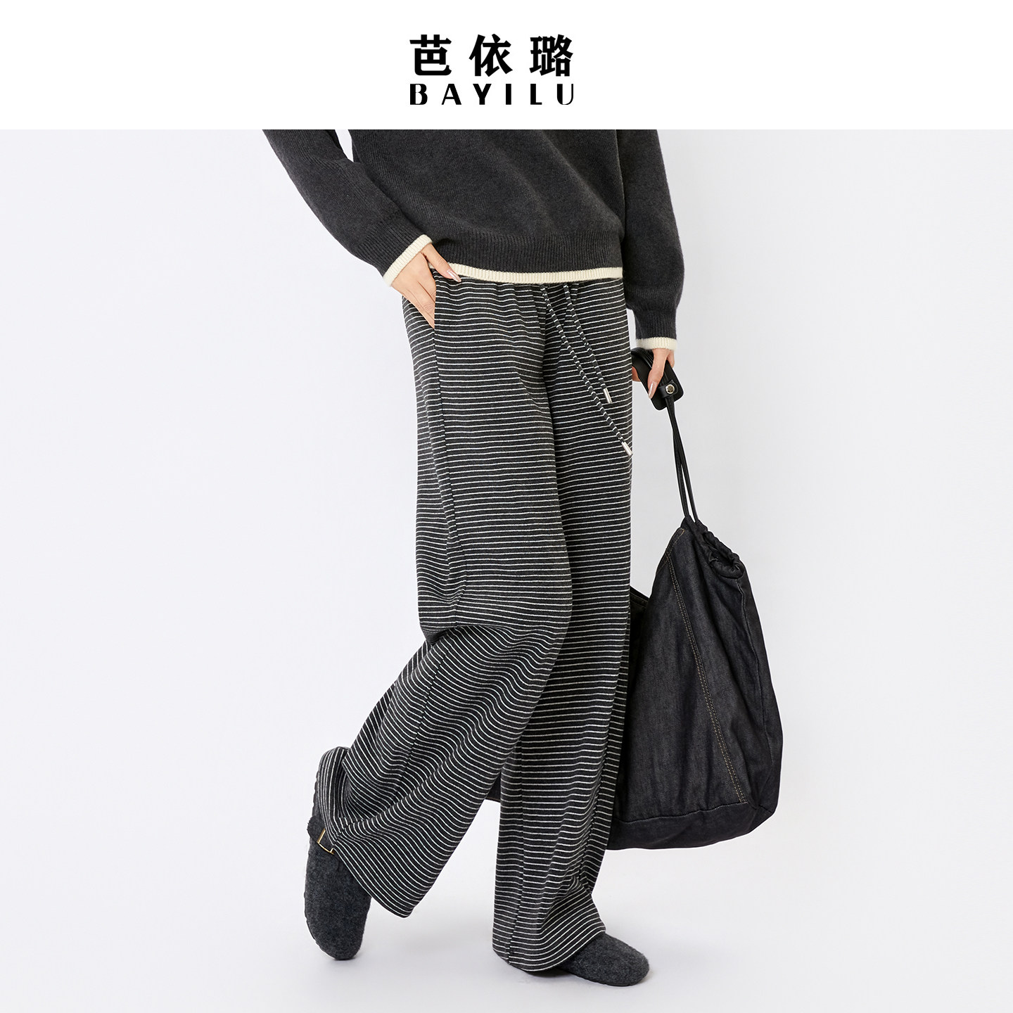 📚 芭依璐2026早春新款休闲裤条纹韩版高腰显瘦直筒阔腿长裤保暖女裤