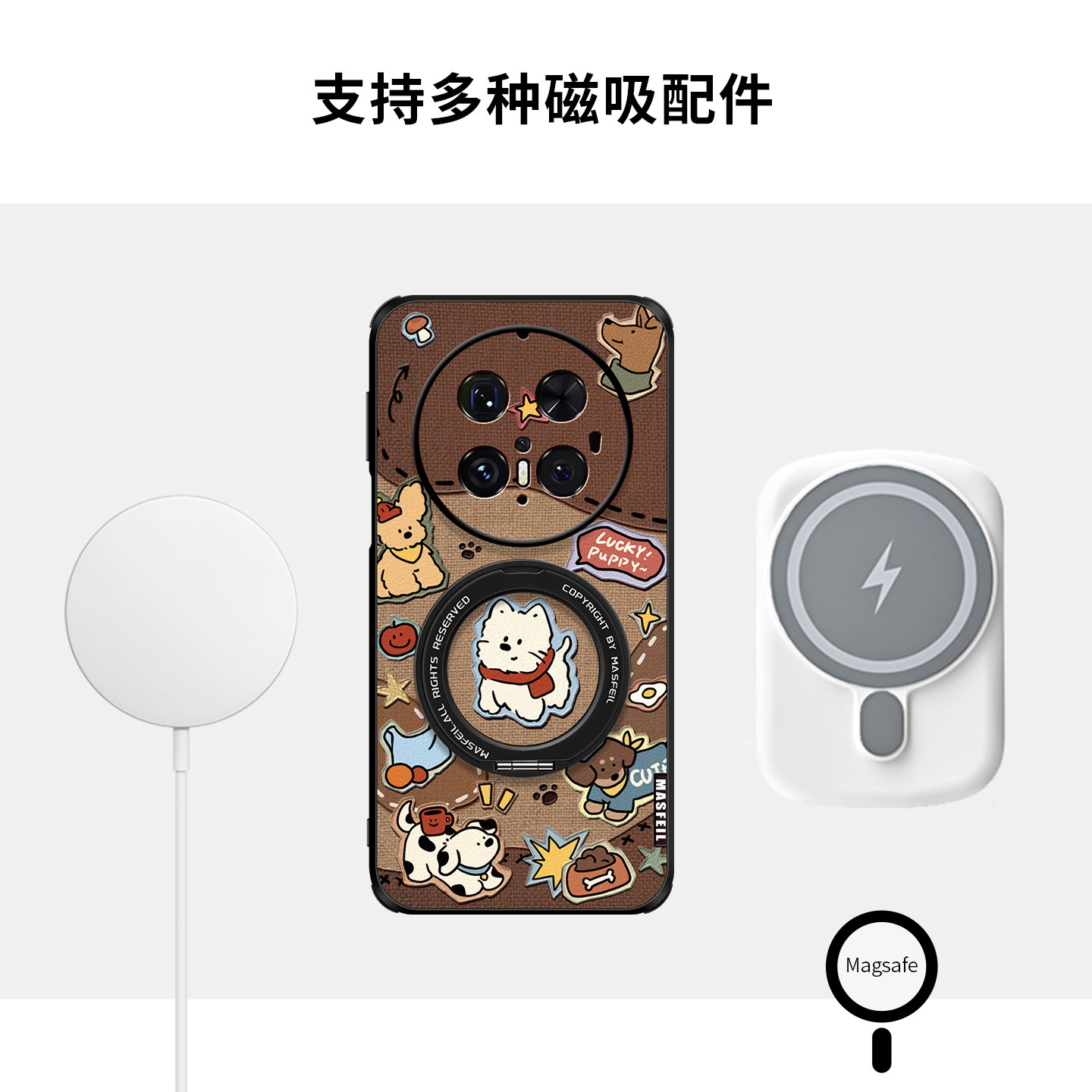 📚 MASFEIL × 拼贴小狗适用华为Mate80Promax手机壳磁吸带支架Ho5新款mate60por+支点套mt70全包豹纹秋冬高级感