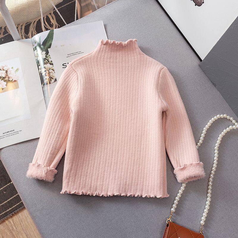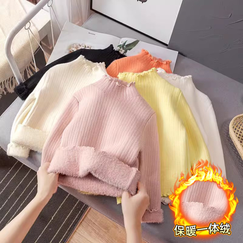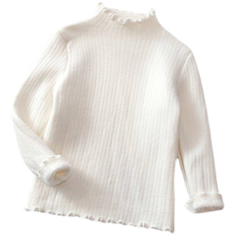 📚 女童加绒半高领毛衣2024女宝宝白色内搭毛衣女孩针织衫儿童打底衫