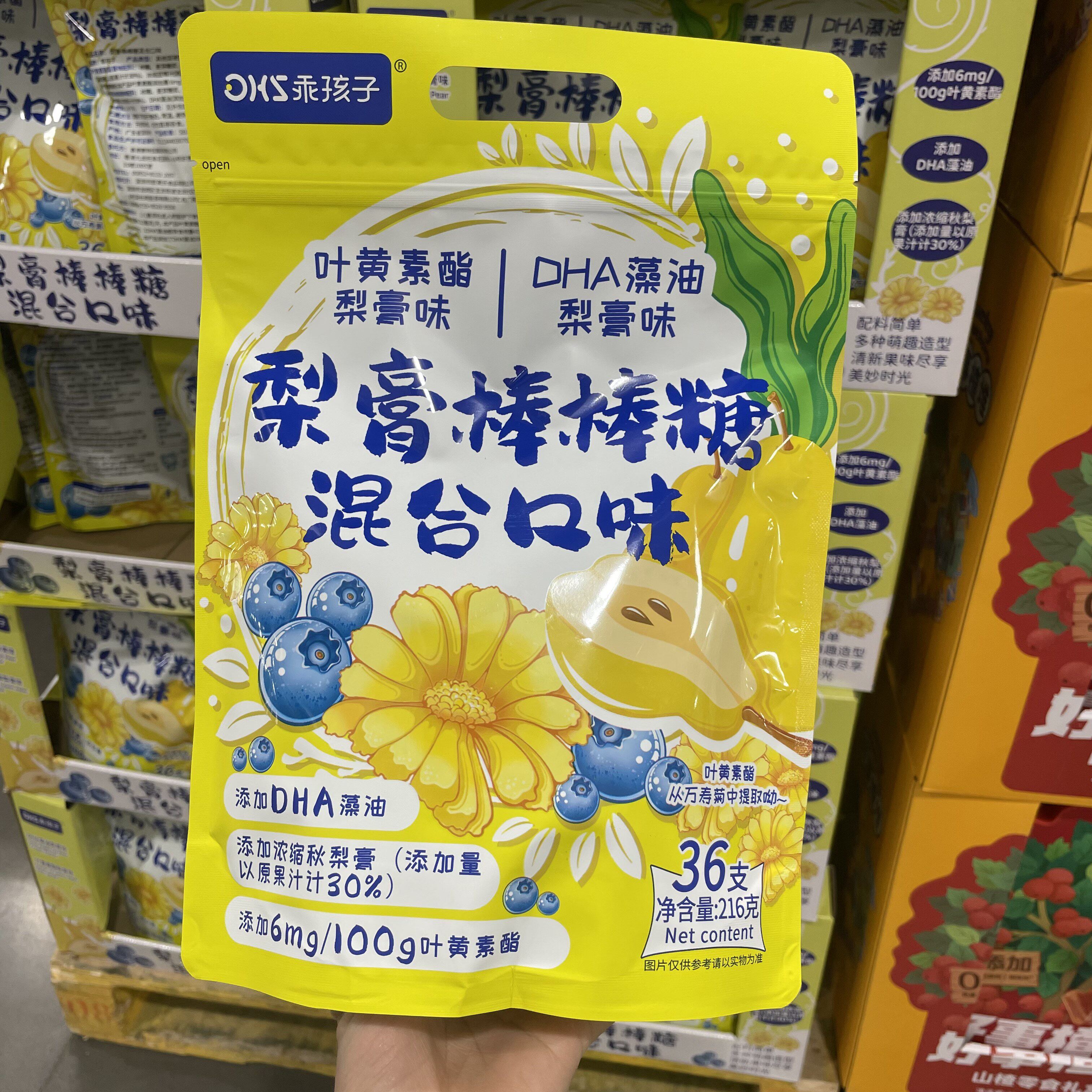 📚 大润发M会员店代购乖孩子梨膏棒棒糖36支叶黄素脂藻油混合口味
