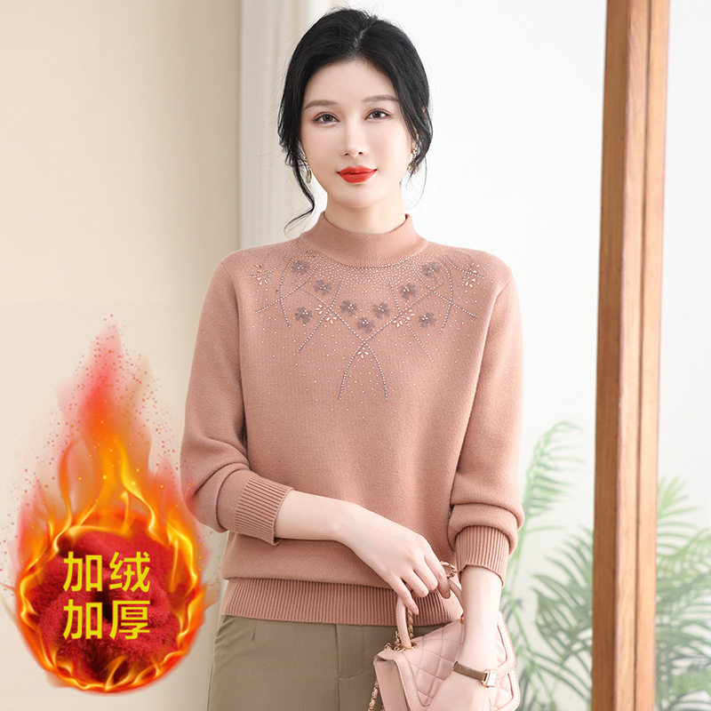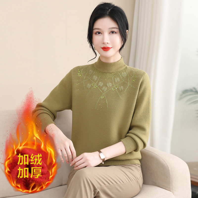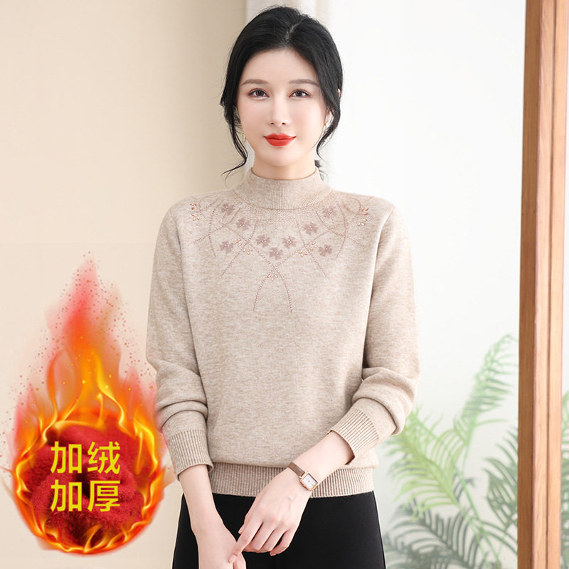 📚 中老年女装加绒加厚毛衣保暖打底衫妈妈装200斤加肥加大码针织衫