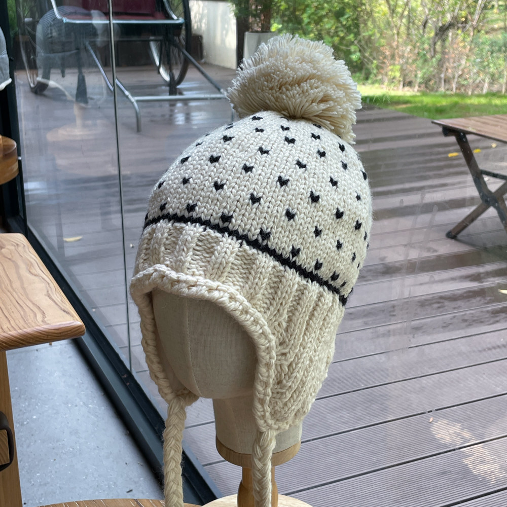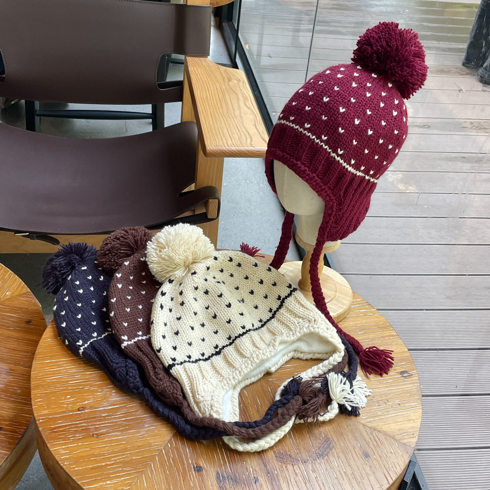 📚 费尔岛2025韩系新款骑车保暖加绒文艺爱心毛线帽护耳针织帽女秋冬