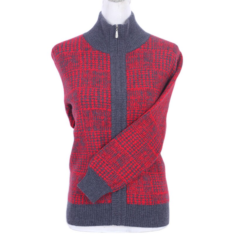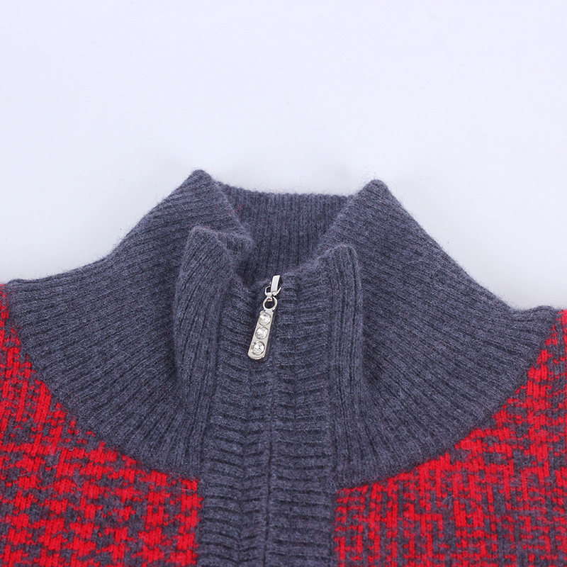 📚 2024秋冬款羊毛衫女加厚高领开衫拉链修身妈妈装针织衫外套老年衫