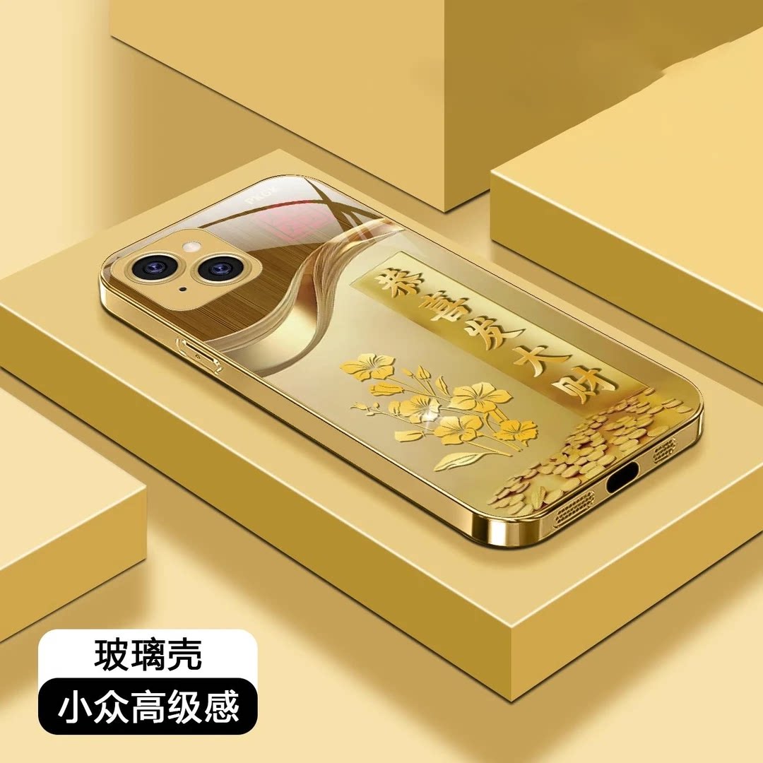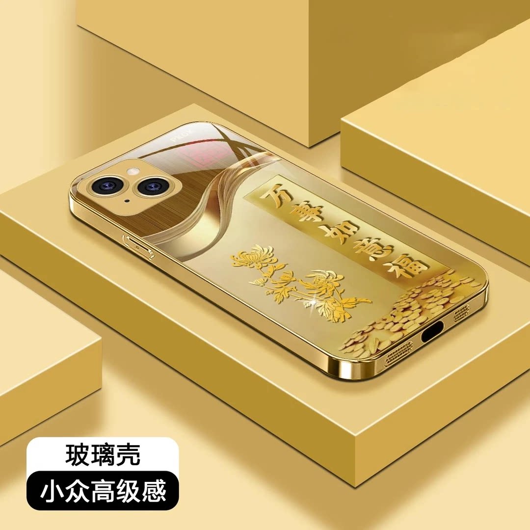 📚 金祝福语液态玻璃适用苹果14手机壳iphone14promax新款全包防摔防摔保护套14plu男女款国潮时尚独特好看外壳