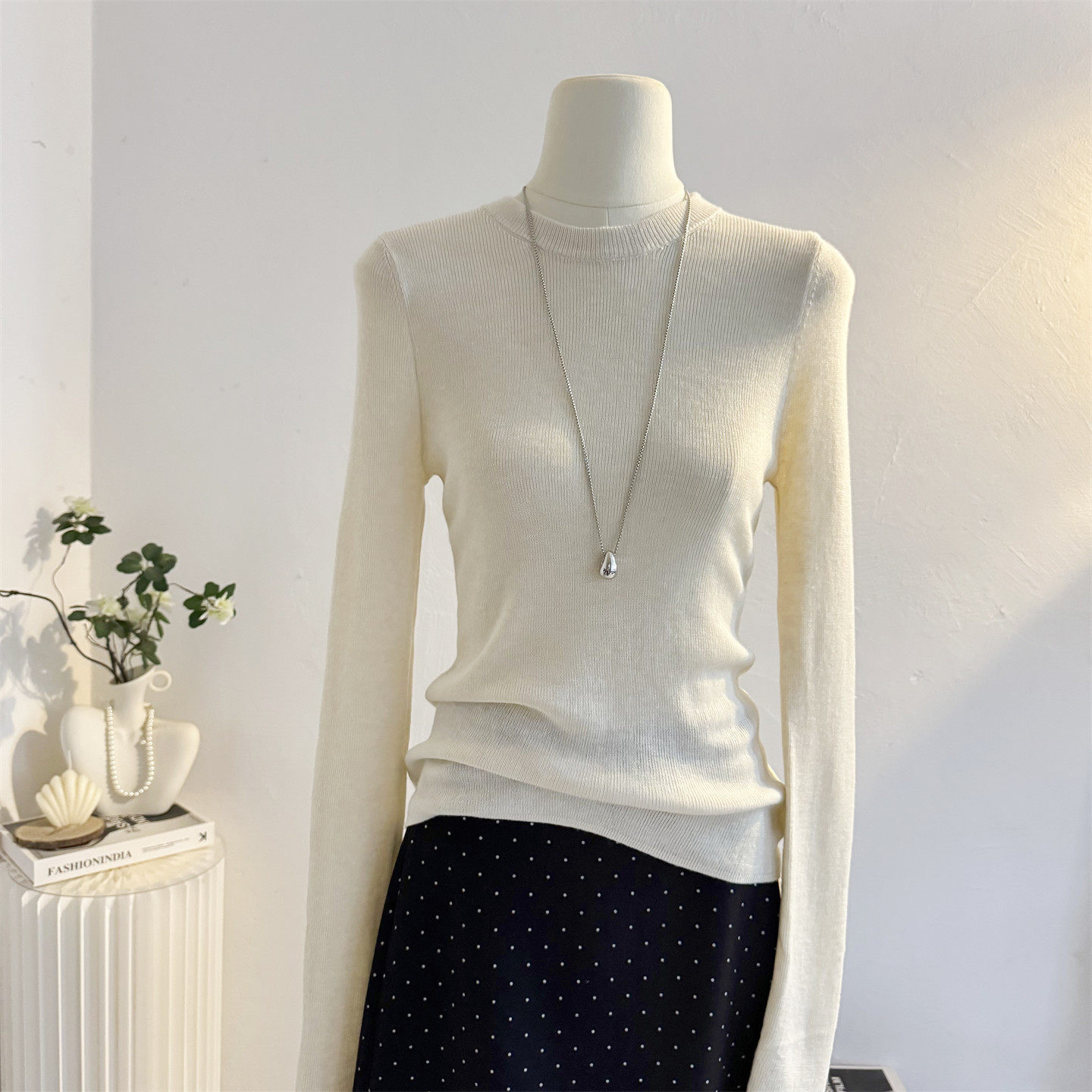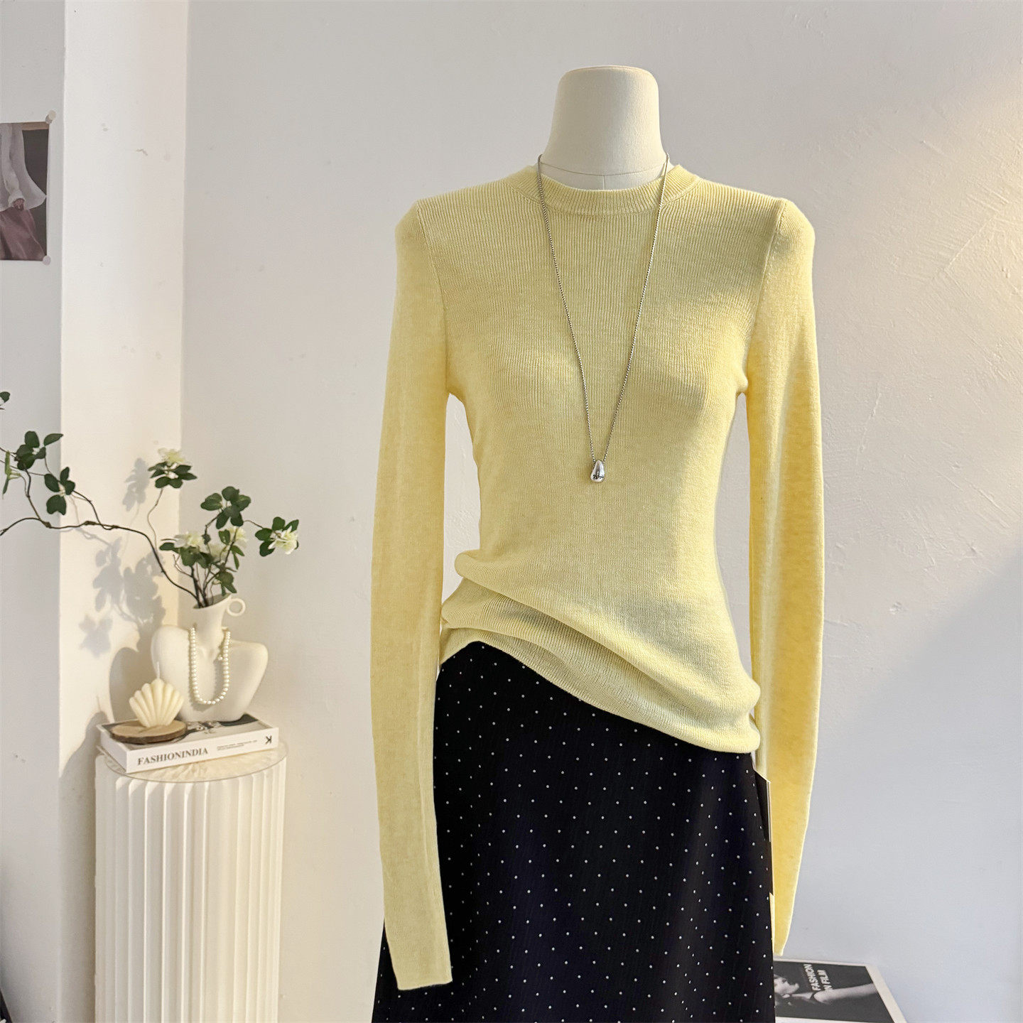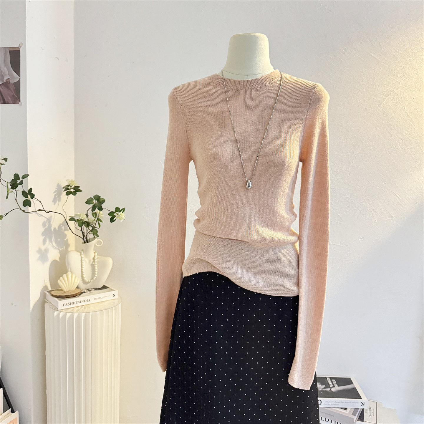📚 韩系纯色修身套头针织衫女长袖2025秋冬季弹力显瘦内搭打底衫上衣