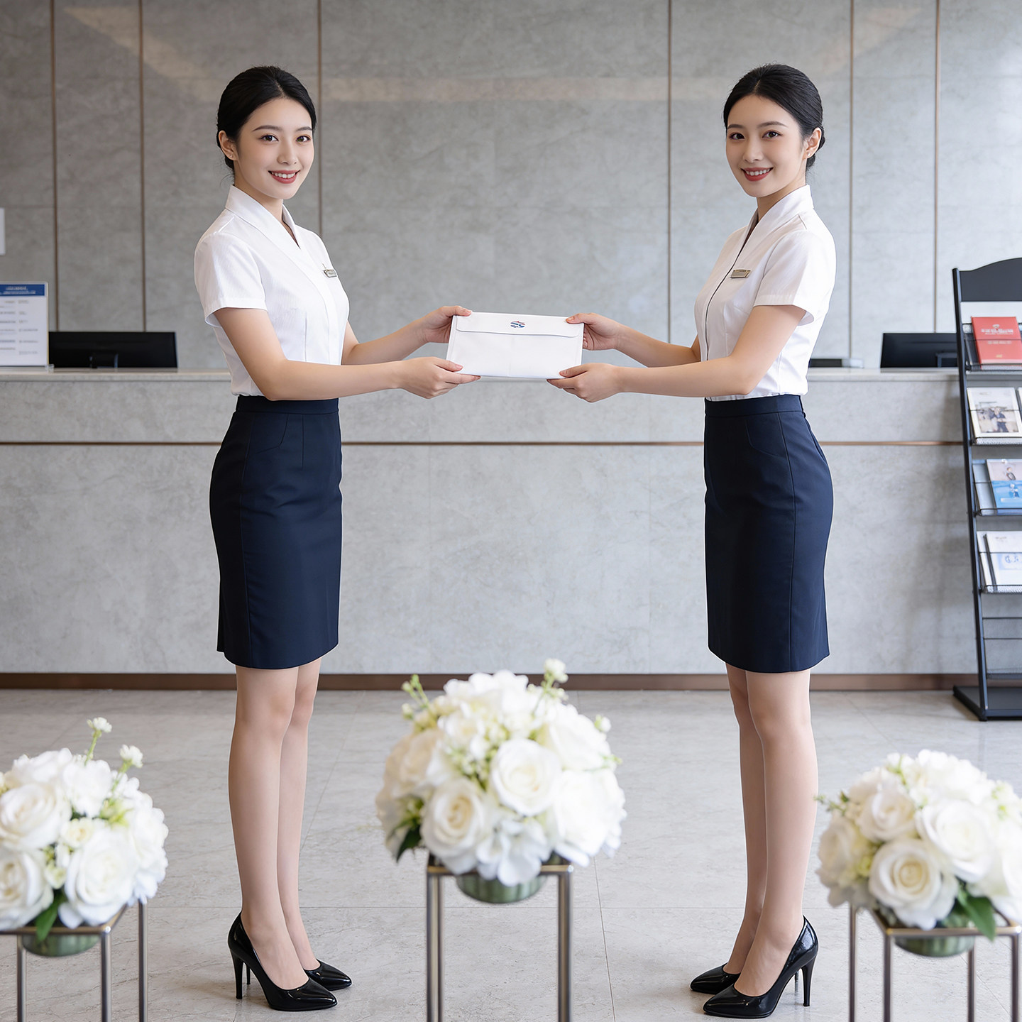 📚 空姐职业装女士V领气质白衬衫短裙空乘案场前台接待高端百搭套装