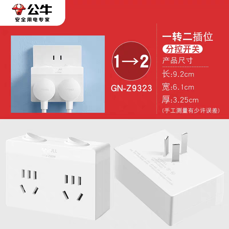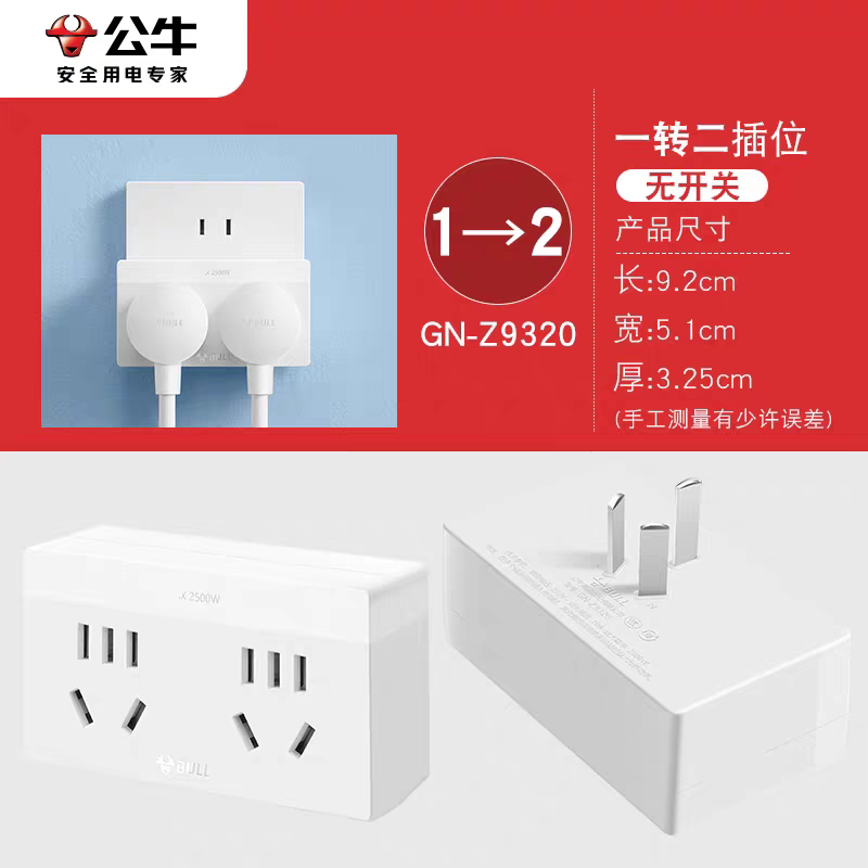 📚 公牛电源一转二转换器一分二扩展转换插头三孔转两孔无线插排插座
