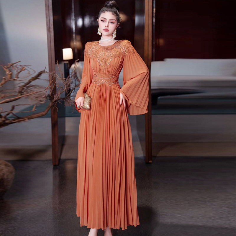 📚 宫廷风2026年春夏季新款高端重工绣花百褶长裙轻奢时尚大摆连衣裙