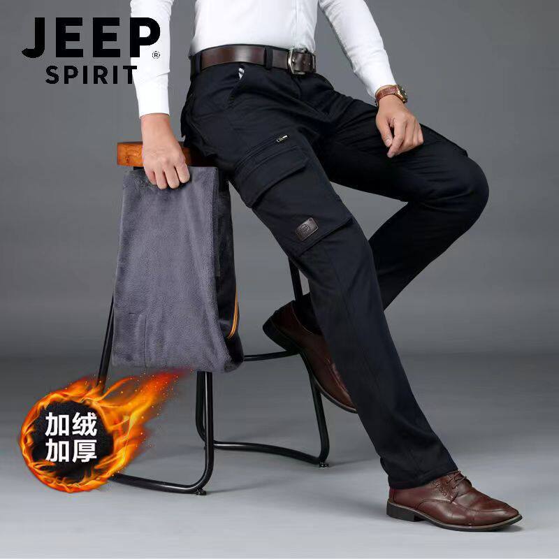 📚 JEEP SPIRIT工装裤男士宽松直筒秋冬季厚款户外多口袋春秋休闲裤