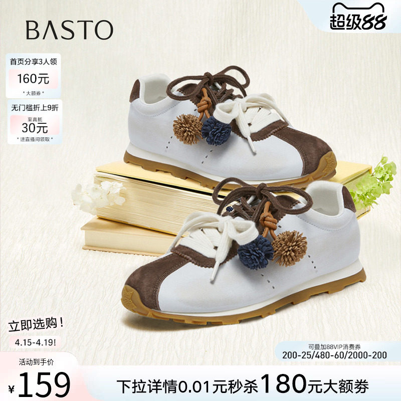 📚 百思图2026春季新款真皮拼色松果德训鞋运动鞋女休闲鞋D3781AM6
