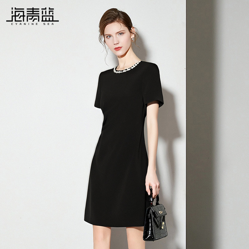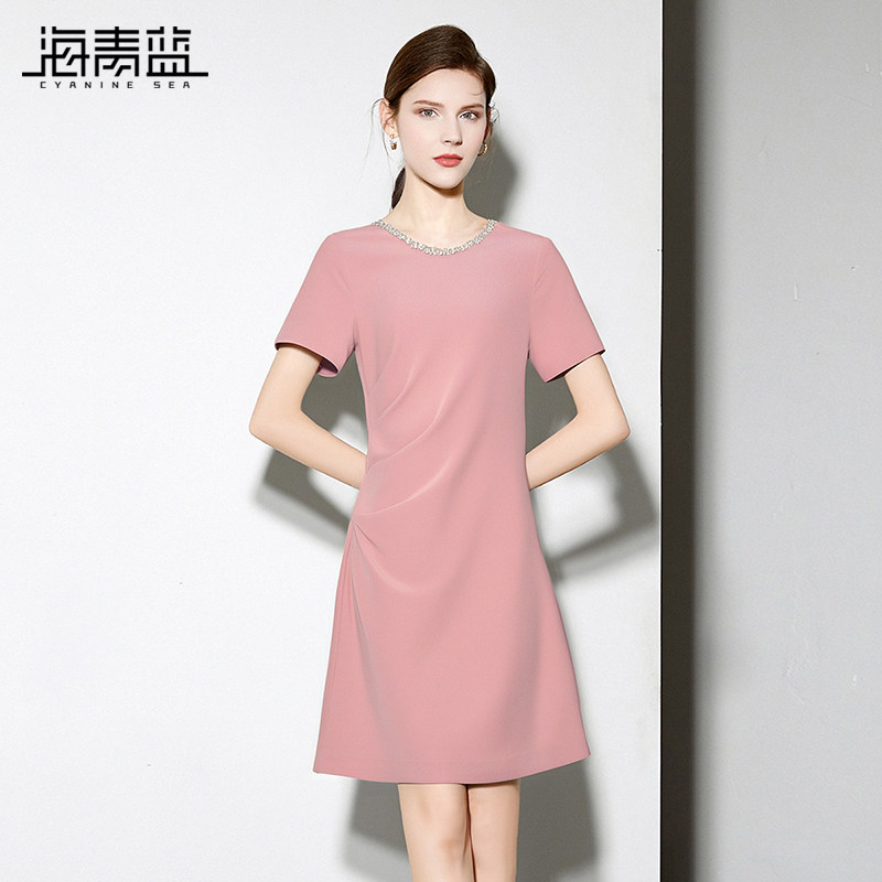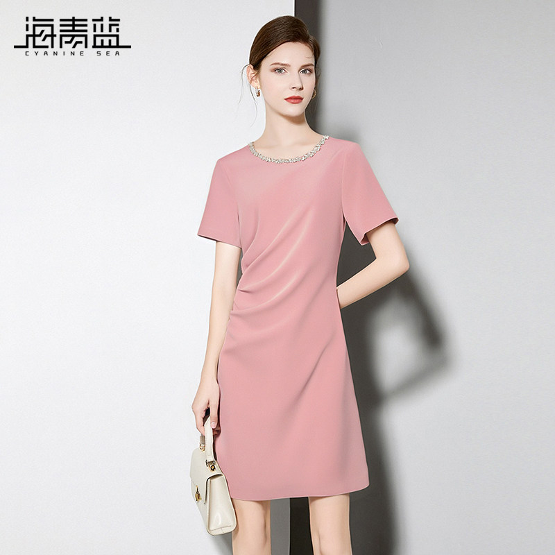 📚 海青蓝 连衣裙夏女2026新款纯色简约女装时尚气质高级中长款裙子