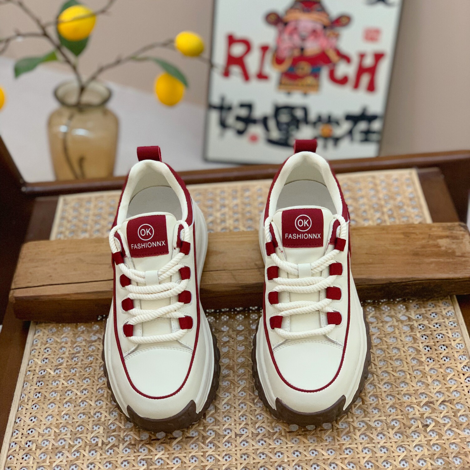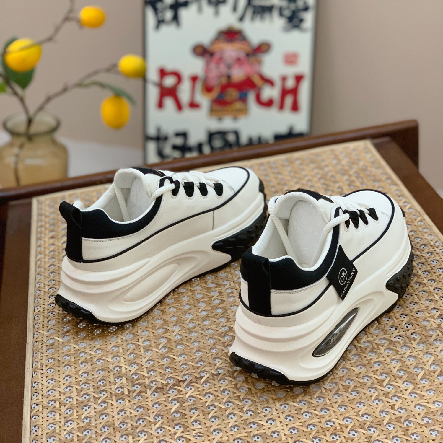 📚 真皮小白鞋女ins潮2026春季新款厚底小个子配裙子休闲板鞋老爹鞋