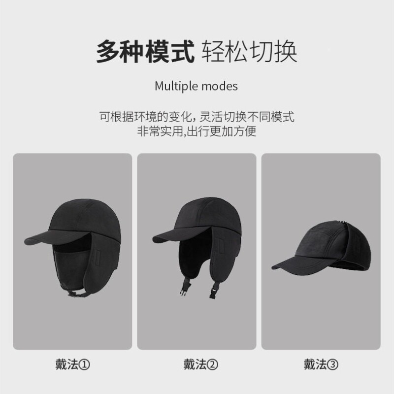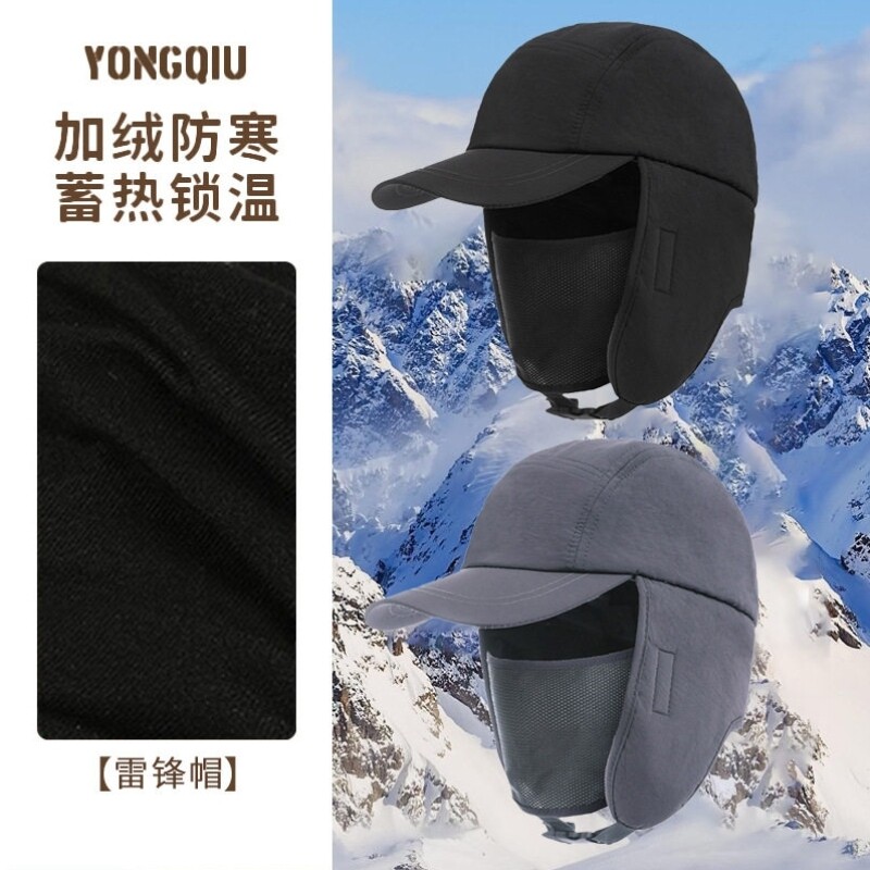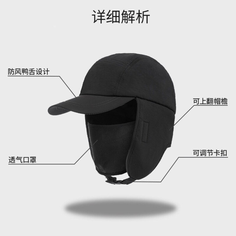 📚 冬季户外路亚钓鱼头套男款加绒防风帽子护脸保暖面罩护耳帽鸭舌帽