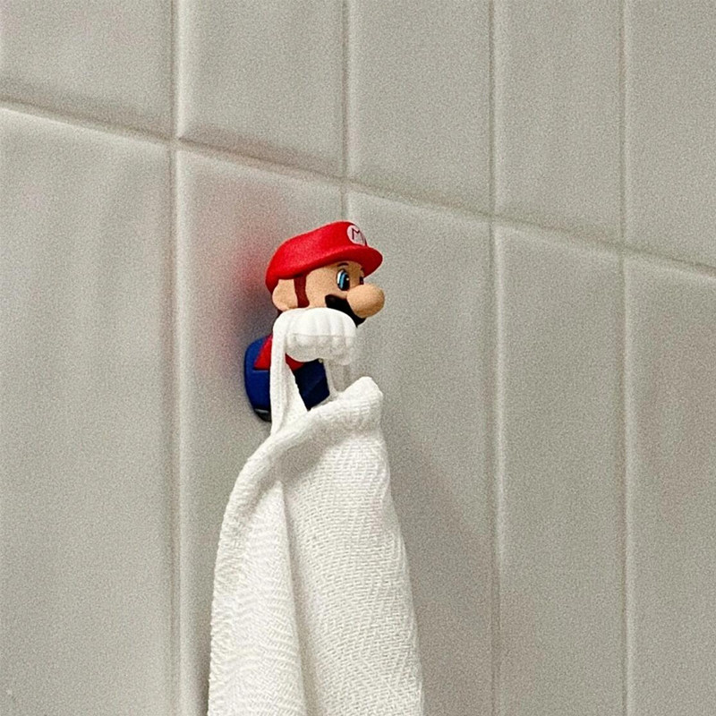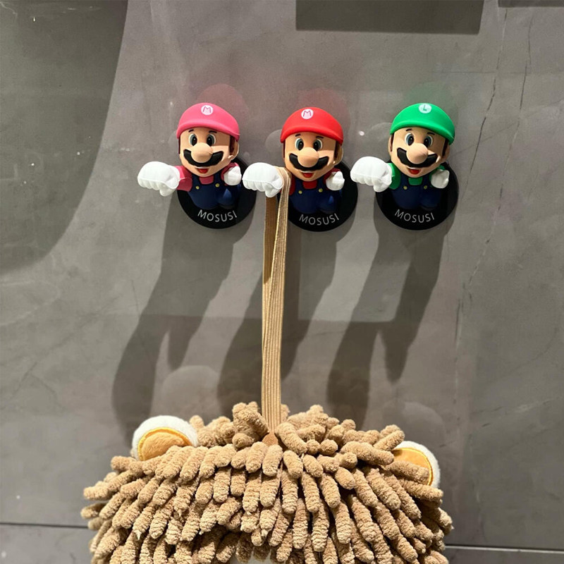 📚 马里奥挂钩卫生间浴室毛巾免打孔粘钩可爱卡通多功能悬挂小衣钩子