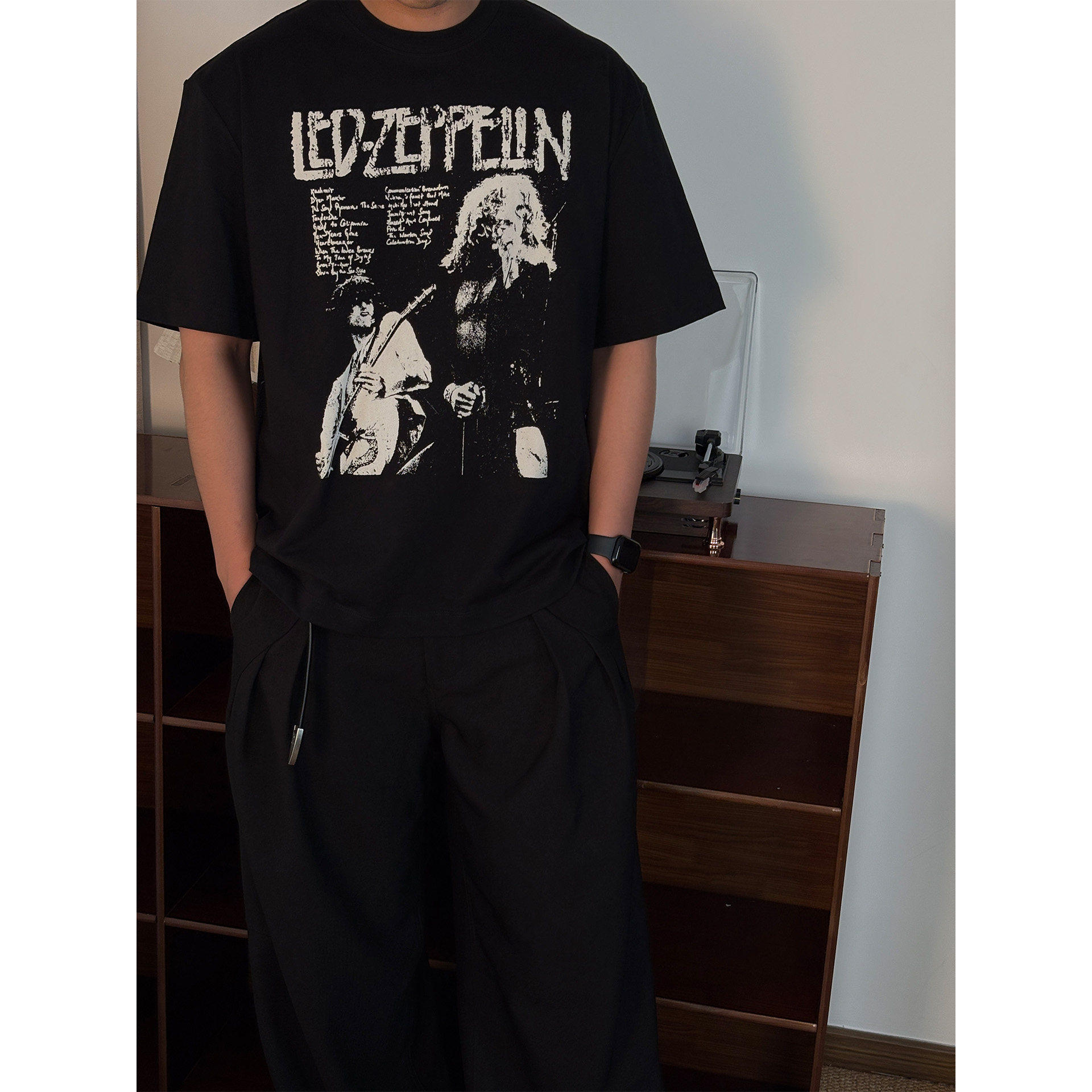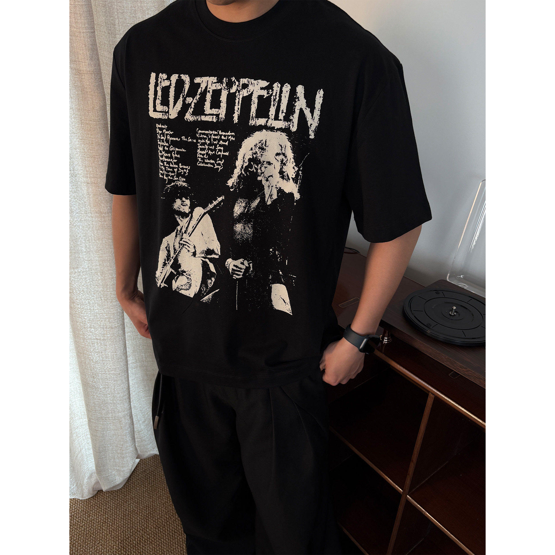 📚 H1c 齐柏林飞艇乐队* 摇滚做旧印花300g纯棉短袖 短款Boxy/小领口