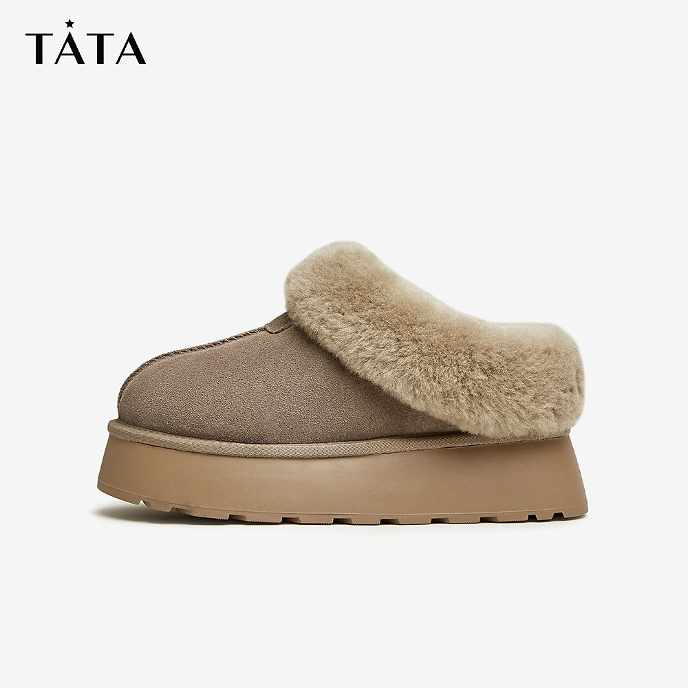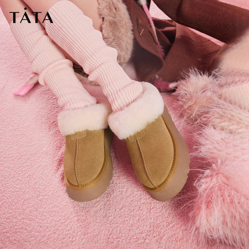 📚 Tata他她加绒厚底雪地靴女棉鞋防滑毛毛鞋早春季新WDX17DM5奥莱