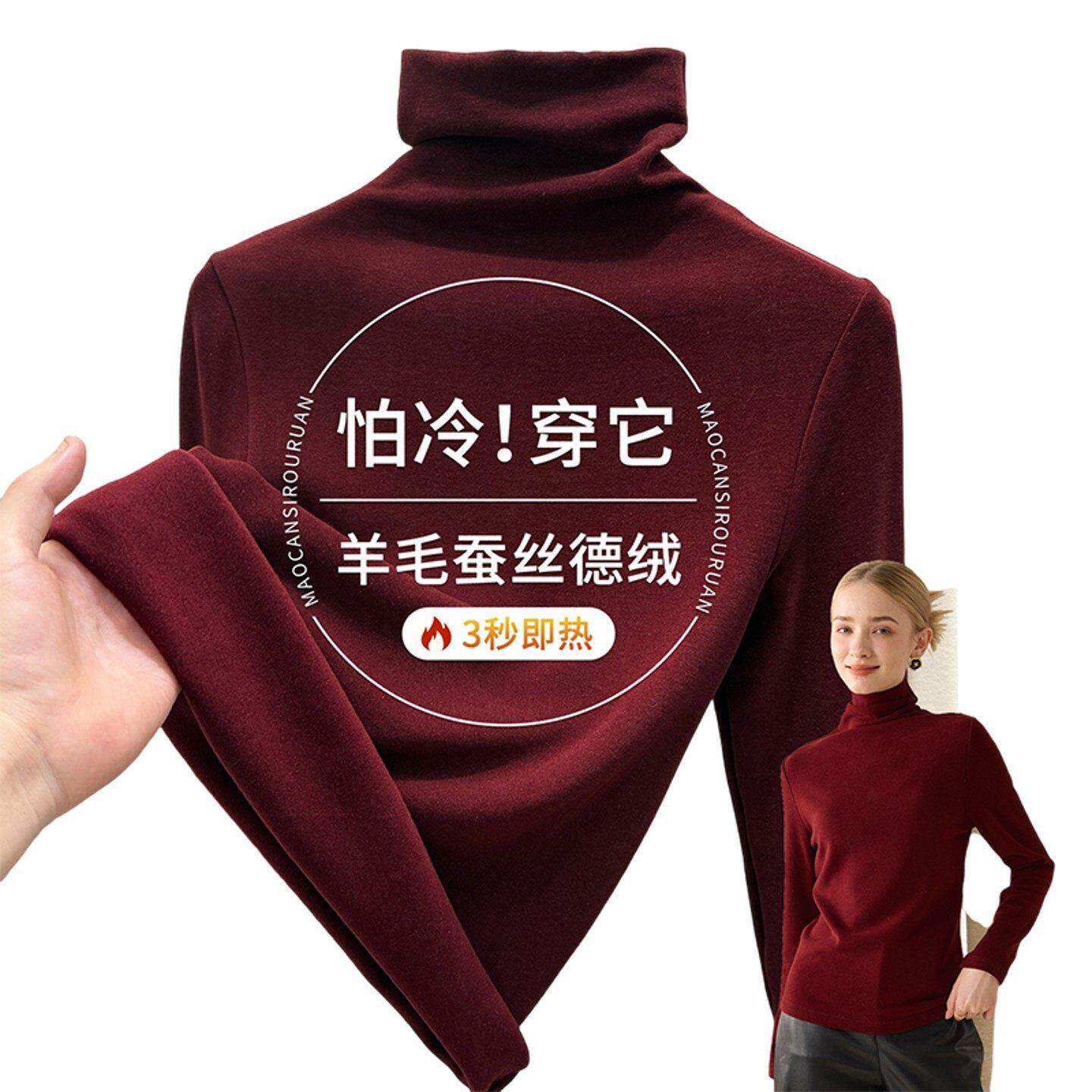 📚 安可拉红高领德绒打底衫女秋冬加绒加厚蚕丝羊毛保暖堆堆领上衣