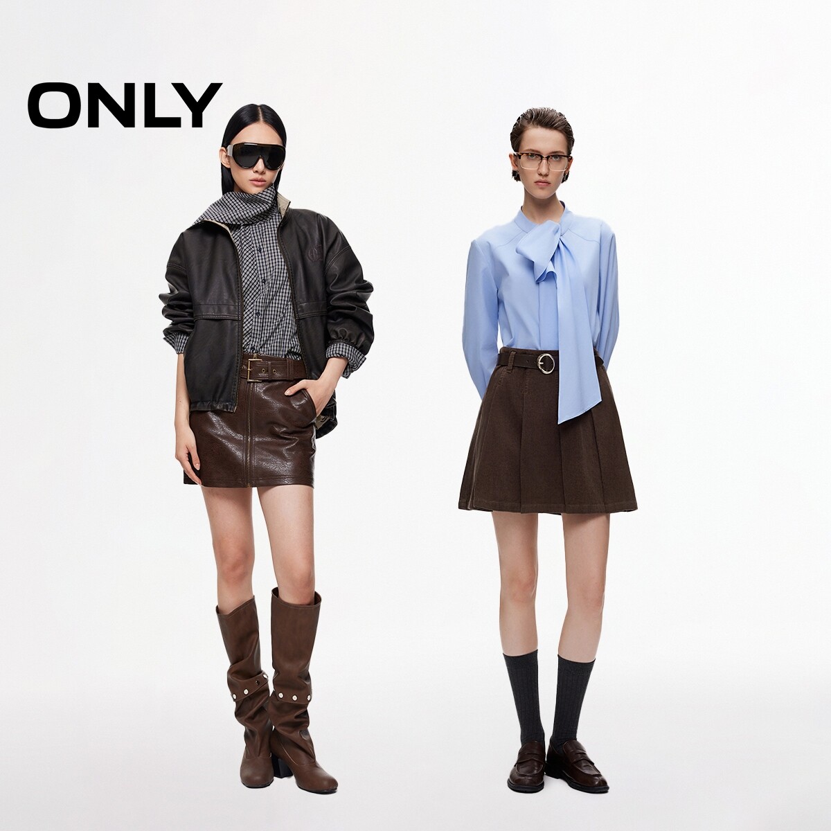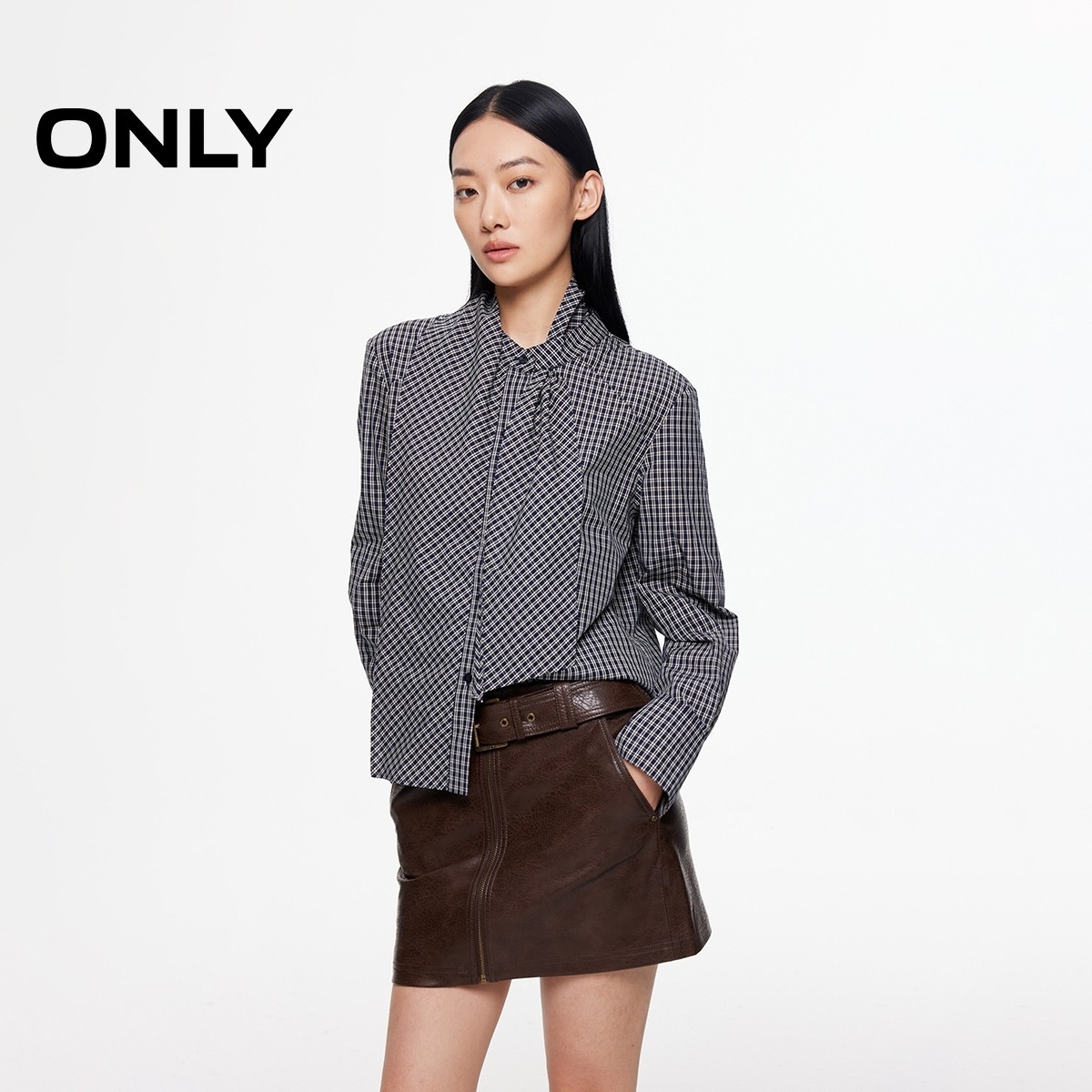 📚 ONLY春季上衣通勤慵懒风松弛感圆领长袖宽松落肩衬衫女|125405005