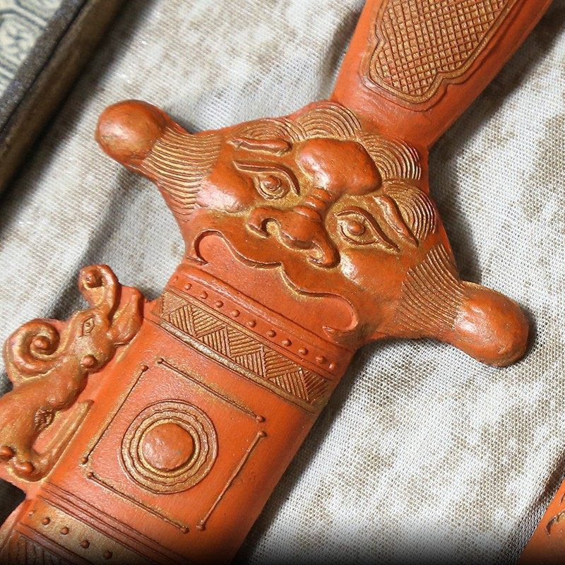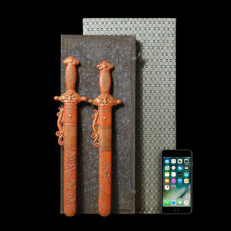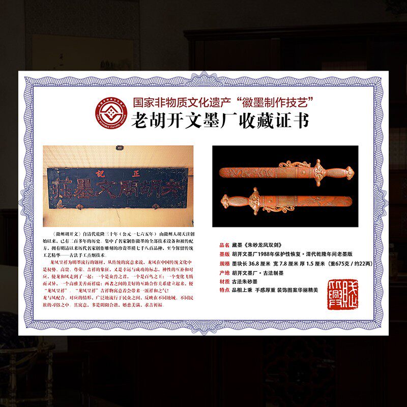📚 国家非遗 1988年制 清代乾隆老墨版《龙凤双剑》胡开文老朱砂墨块 收藏墨块陈墨条 高档墨锭礼品文房四宝徽墨