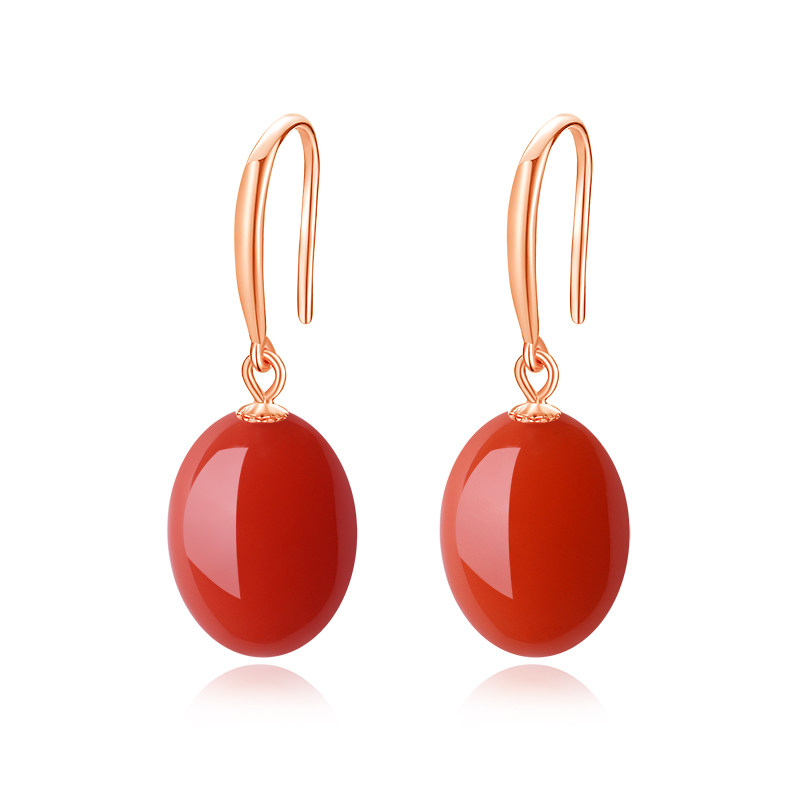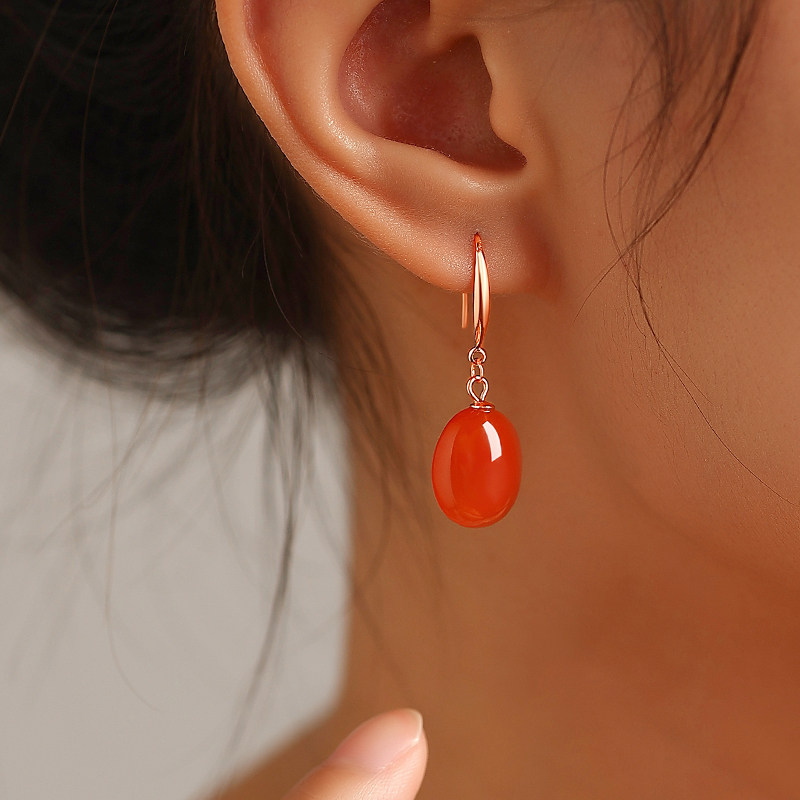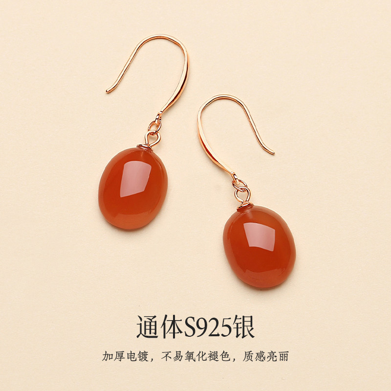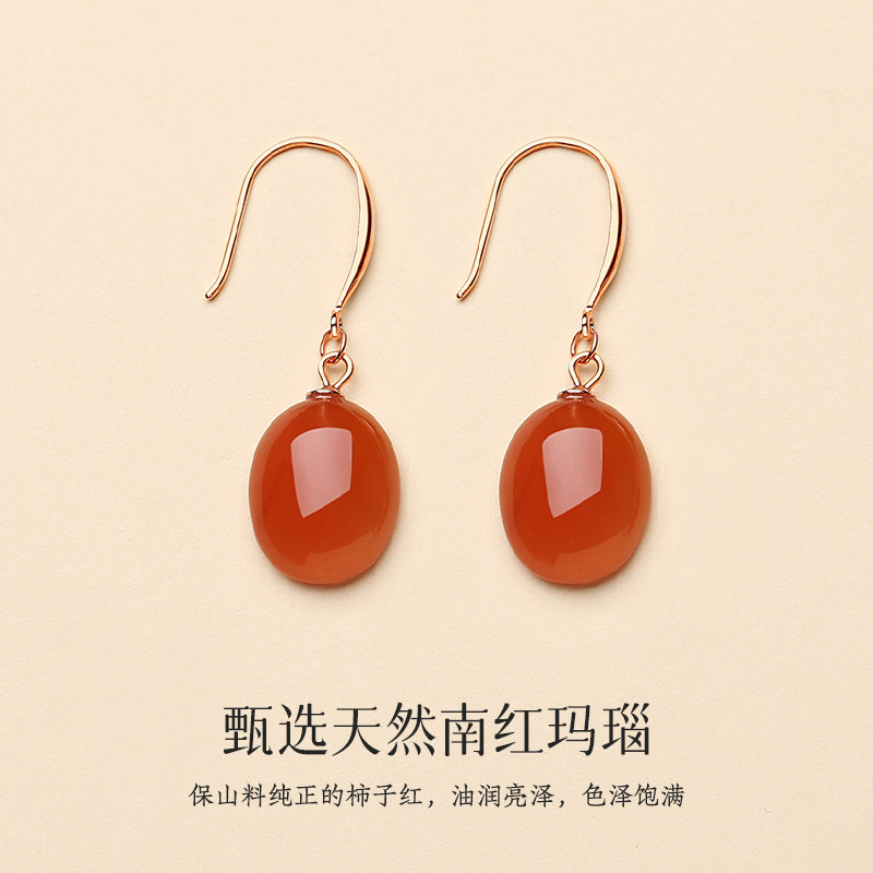 📚 天然保山南红玛瑙耳饰女汉服蛋面无事牌冰红耳坠九紫离火素面耳环