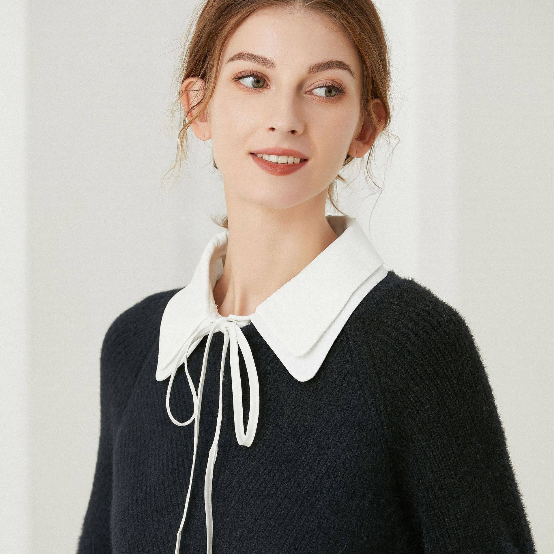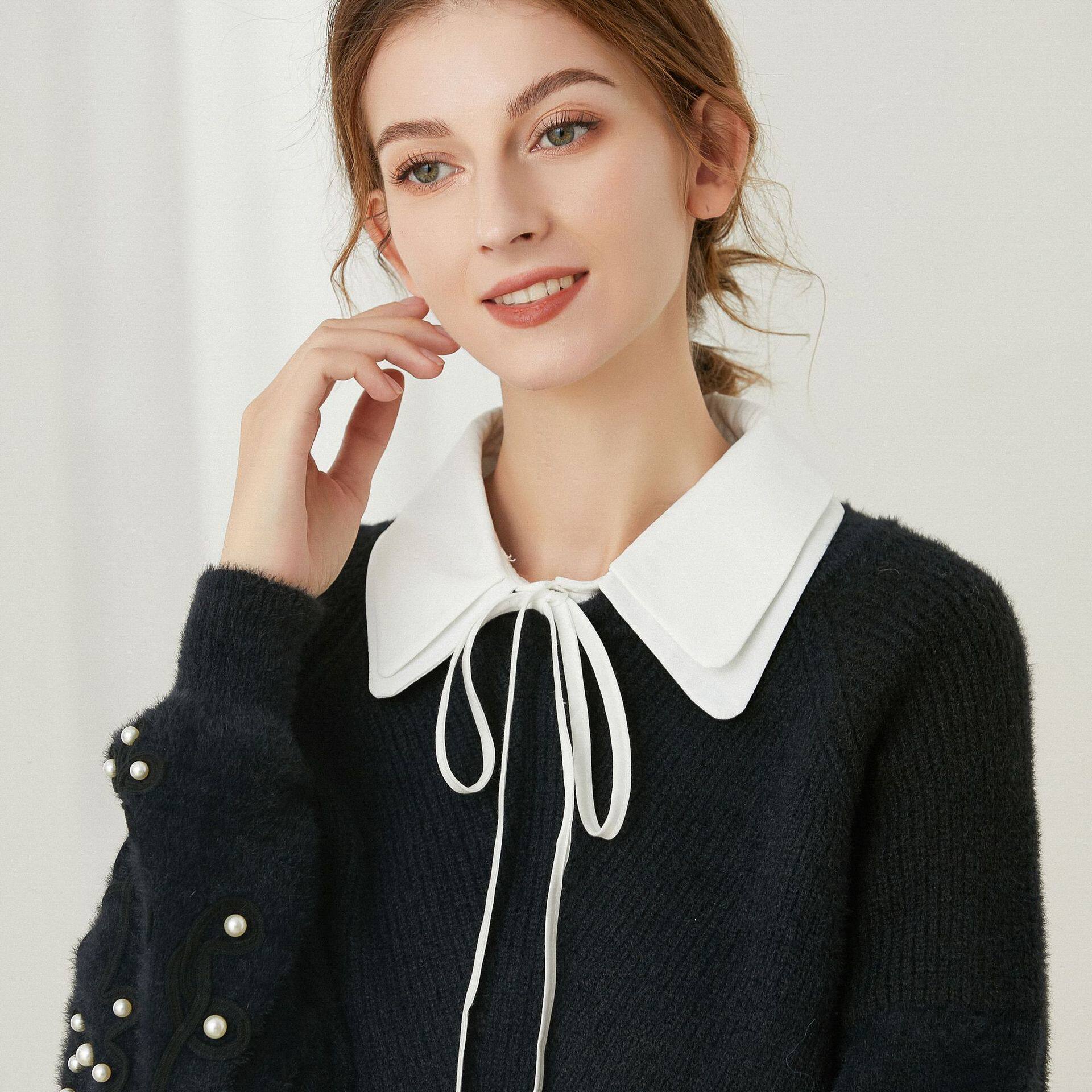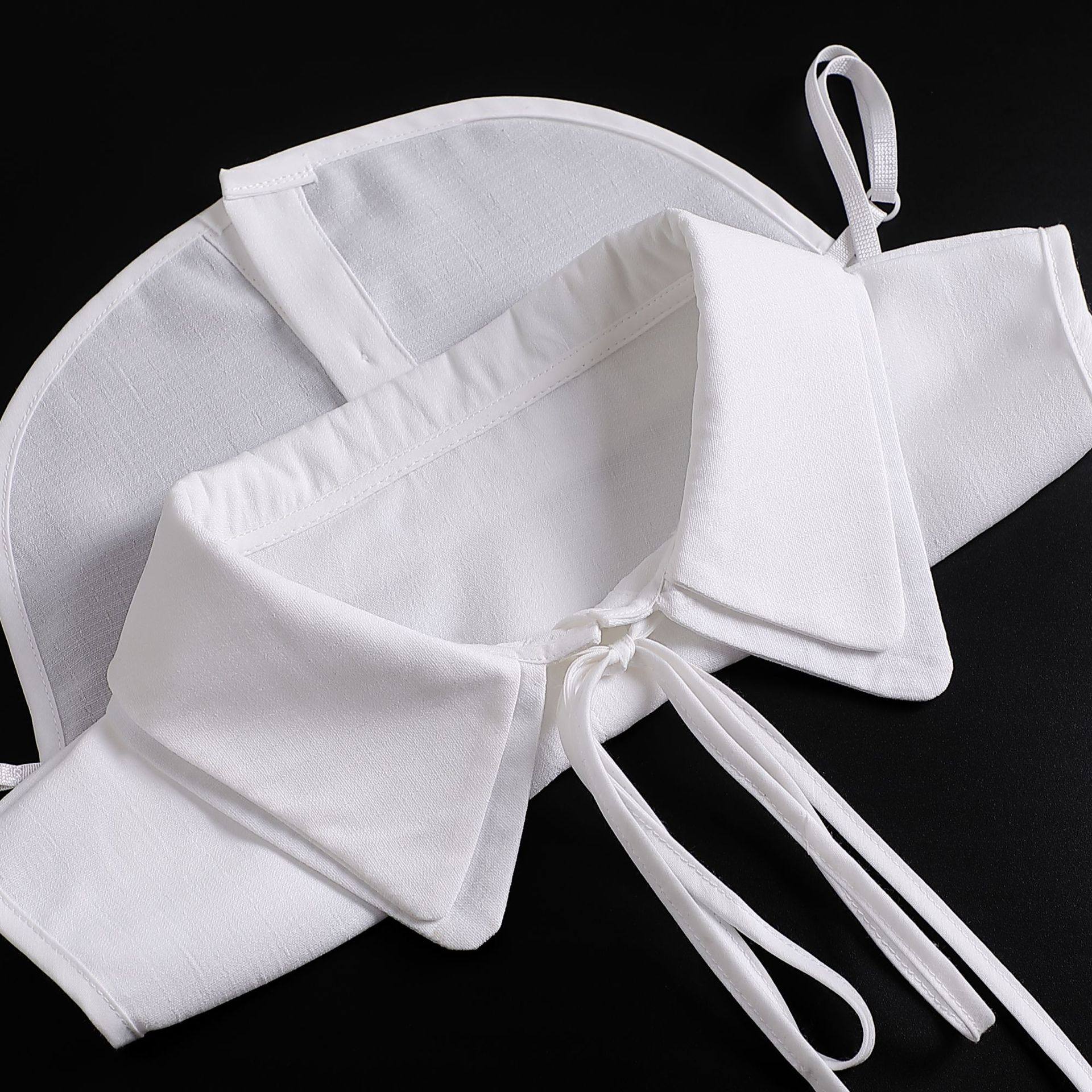 📚 双层尖领装饰领娃娃领假领子白色雪纺系带衬衫领配毛衣装饰领衣领