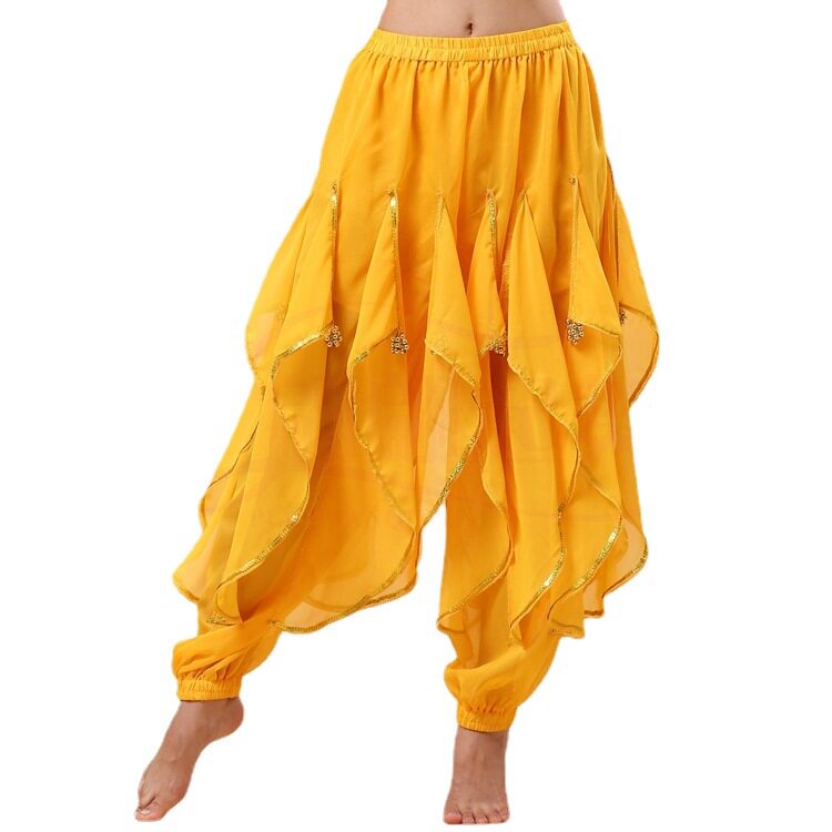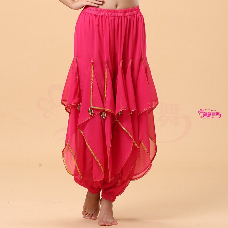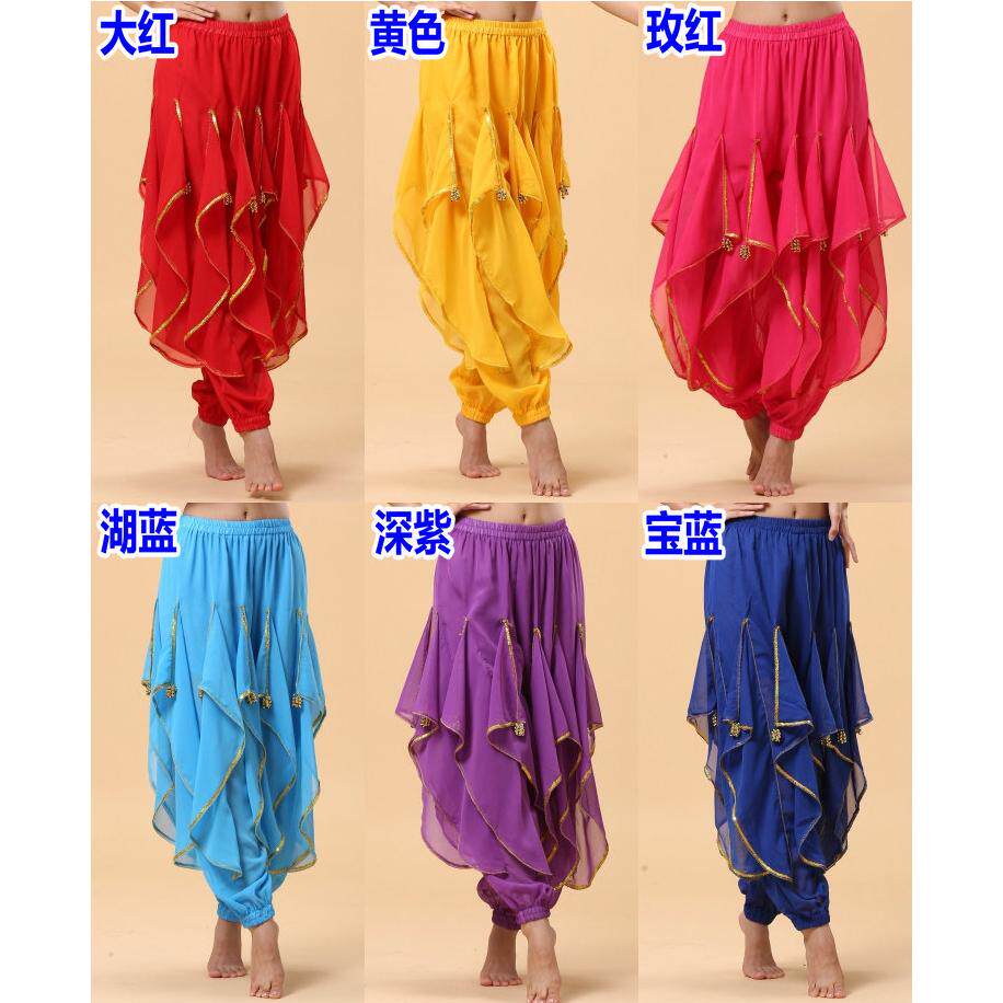 📚 成人印度舞蹈演出表演服新款肚皮舞练习服练功服雪纺金边旋转裤子
